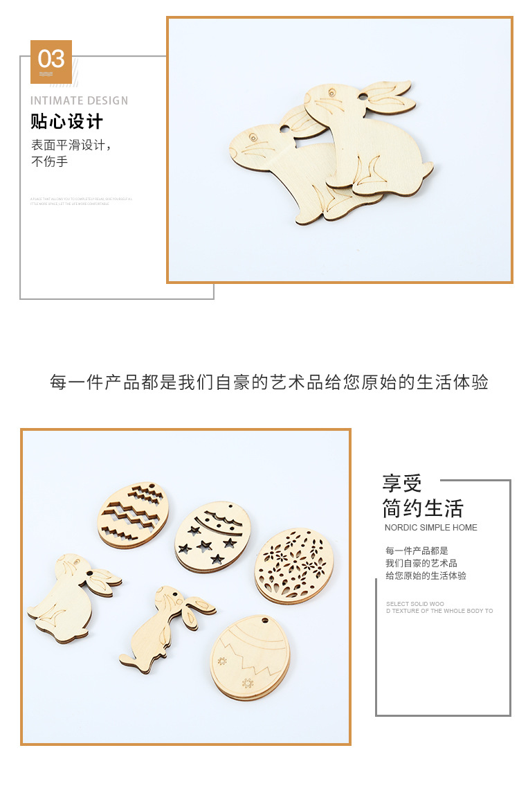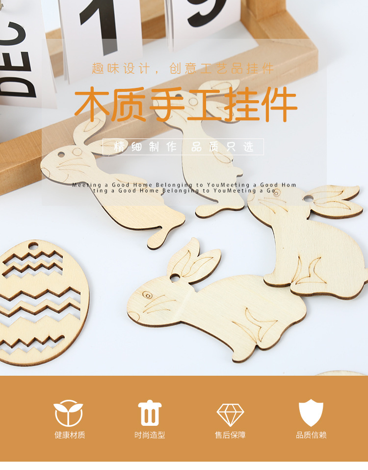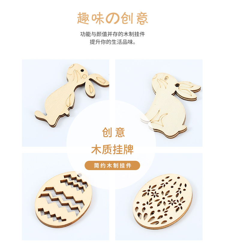 创意复活节木质工艺品挂件激光涂鸦家居装饰品木片挂饰木制挂牌