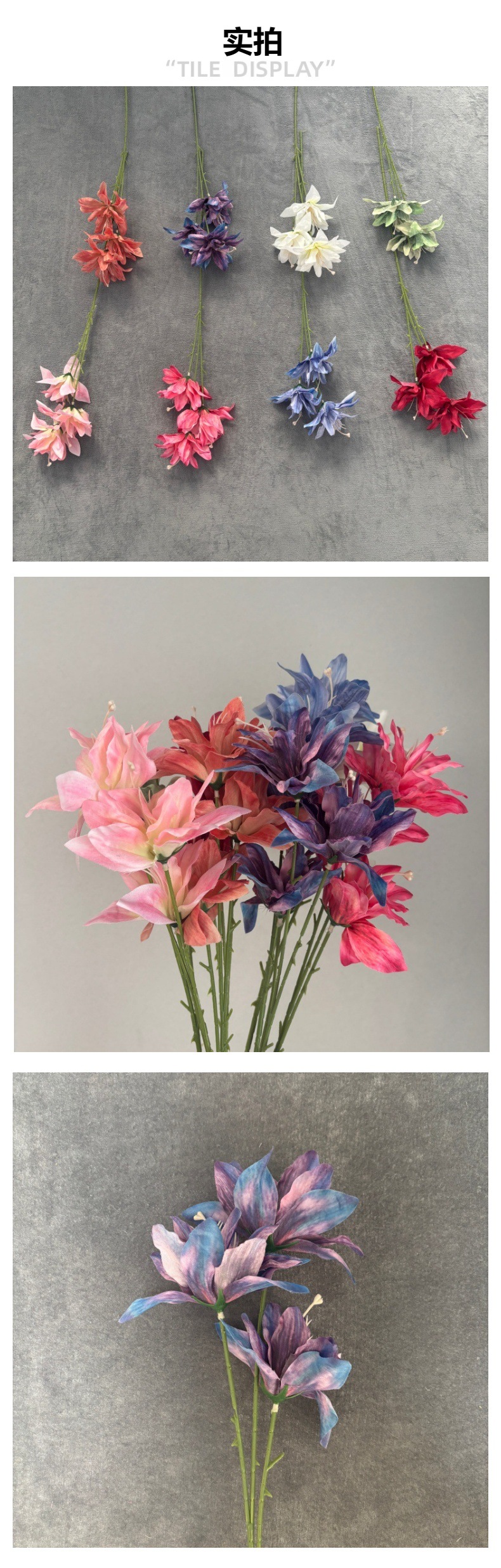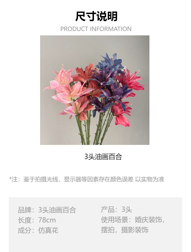 跨境3头油画百合花束家居装饰仿真百合花小清新把花跨境仿真花