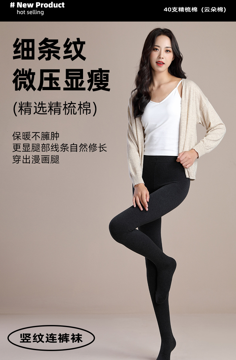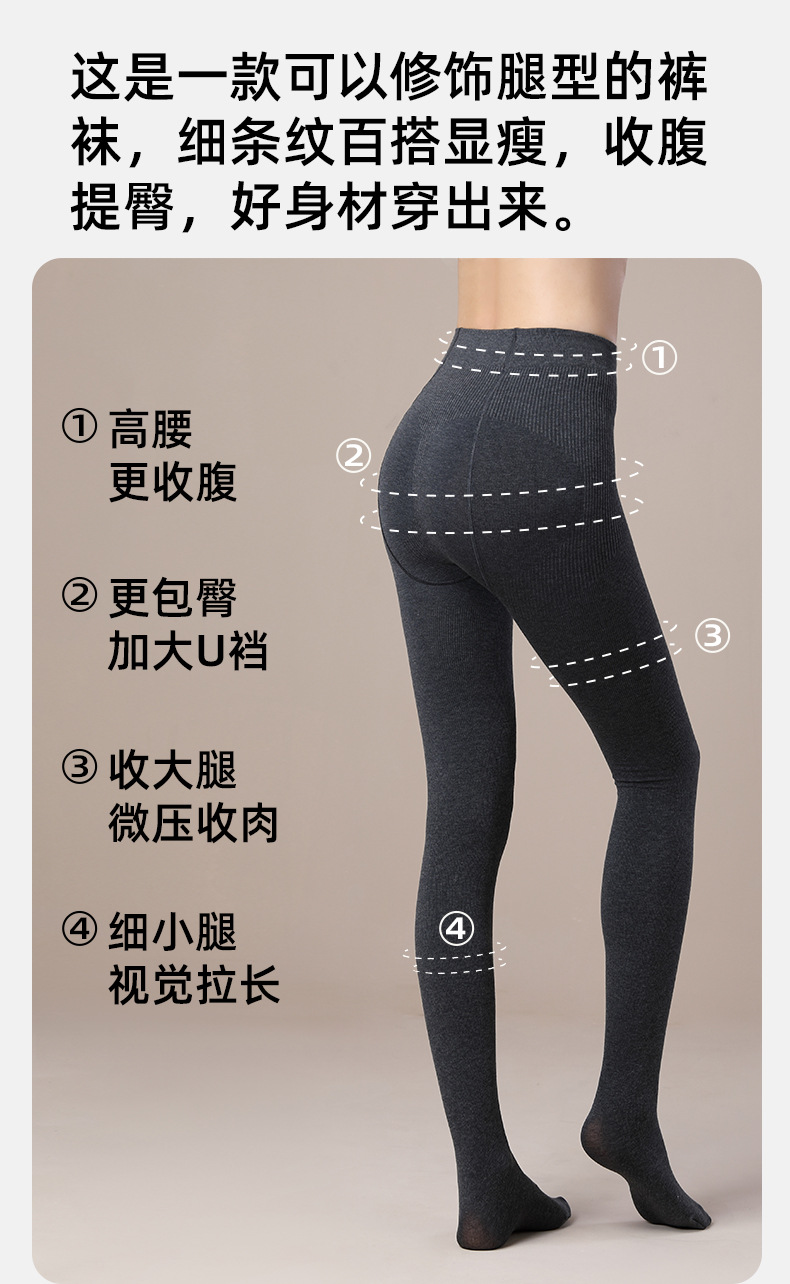 360D棉竖条纹真毛圈连裤袜打底裤修身保暖加绒柔软不掉档加大码