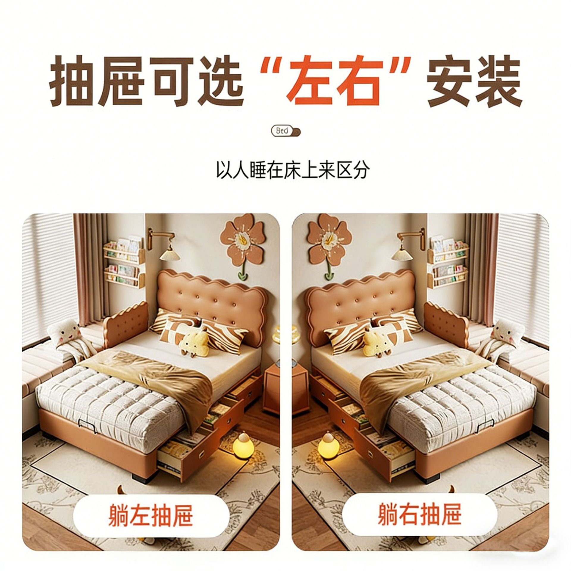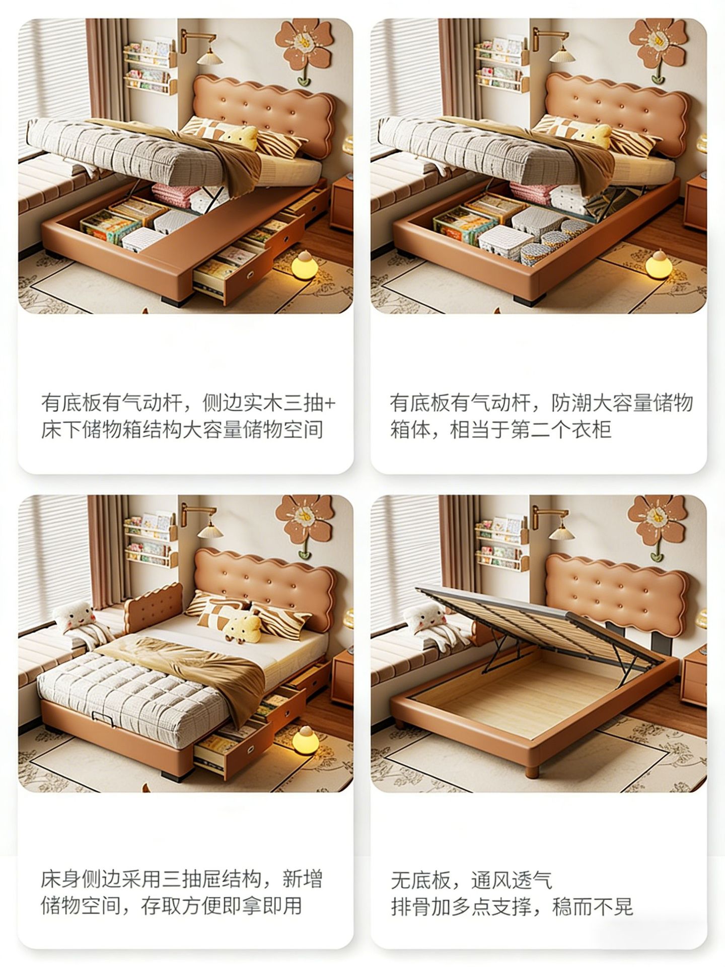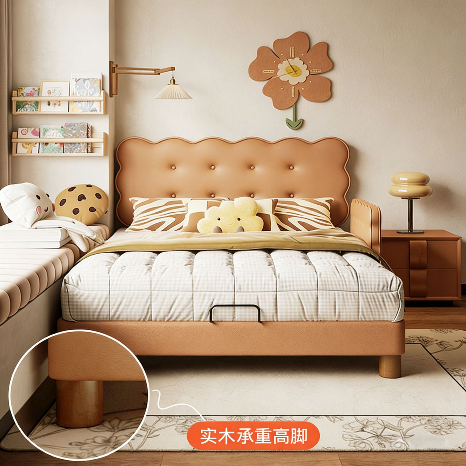 饼干床男孩床卧室现代简约抽屉储物小户型儿童房单人床公主真皮床