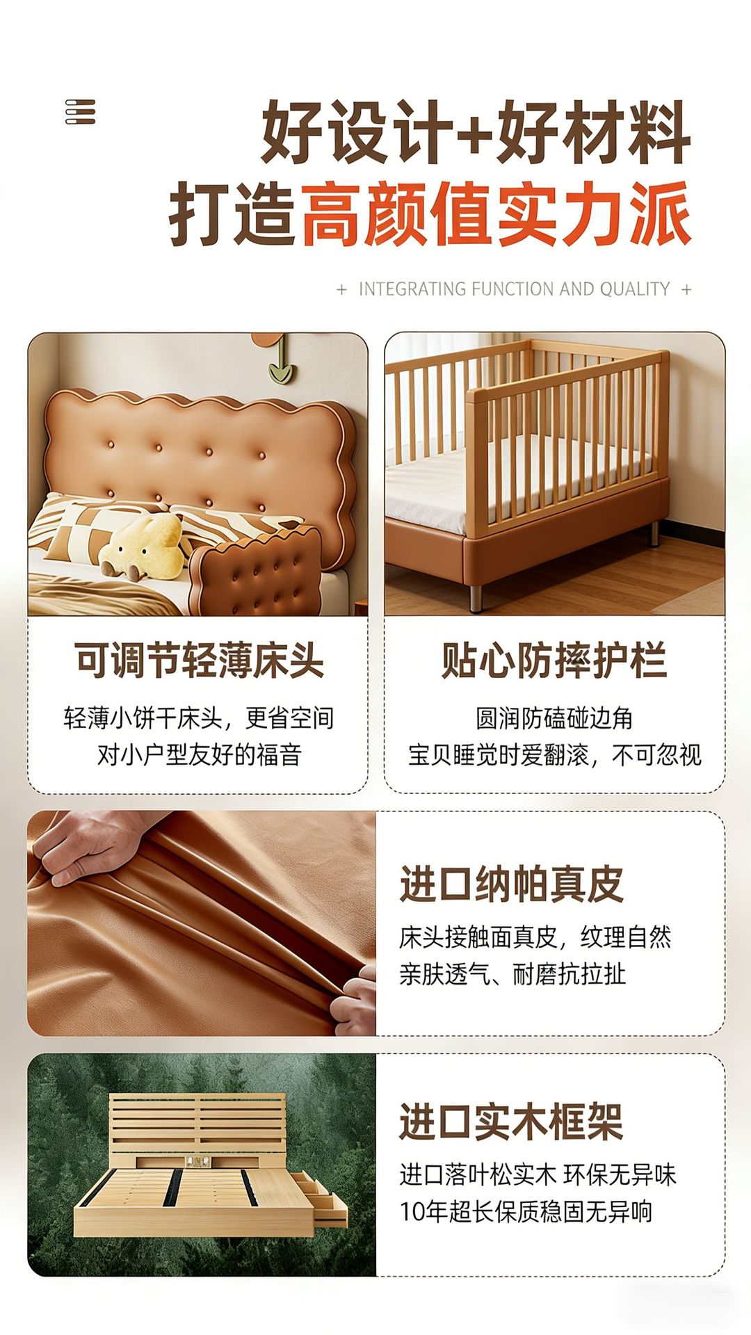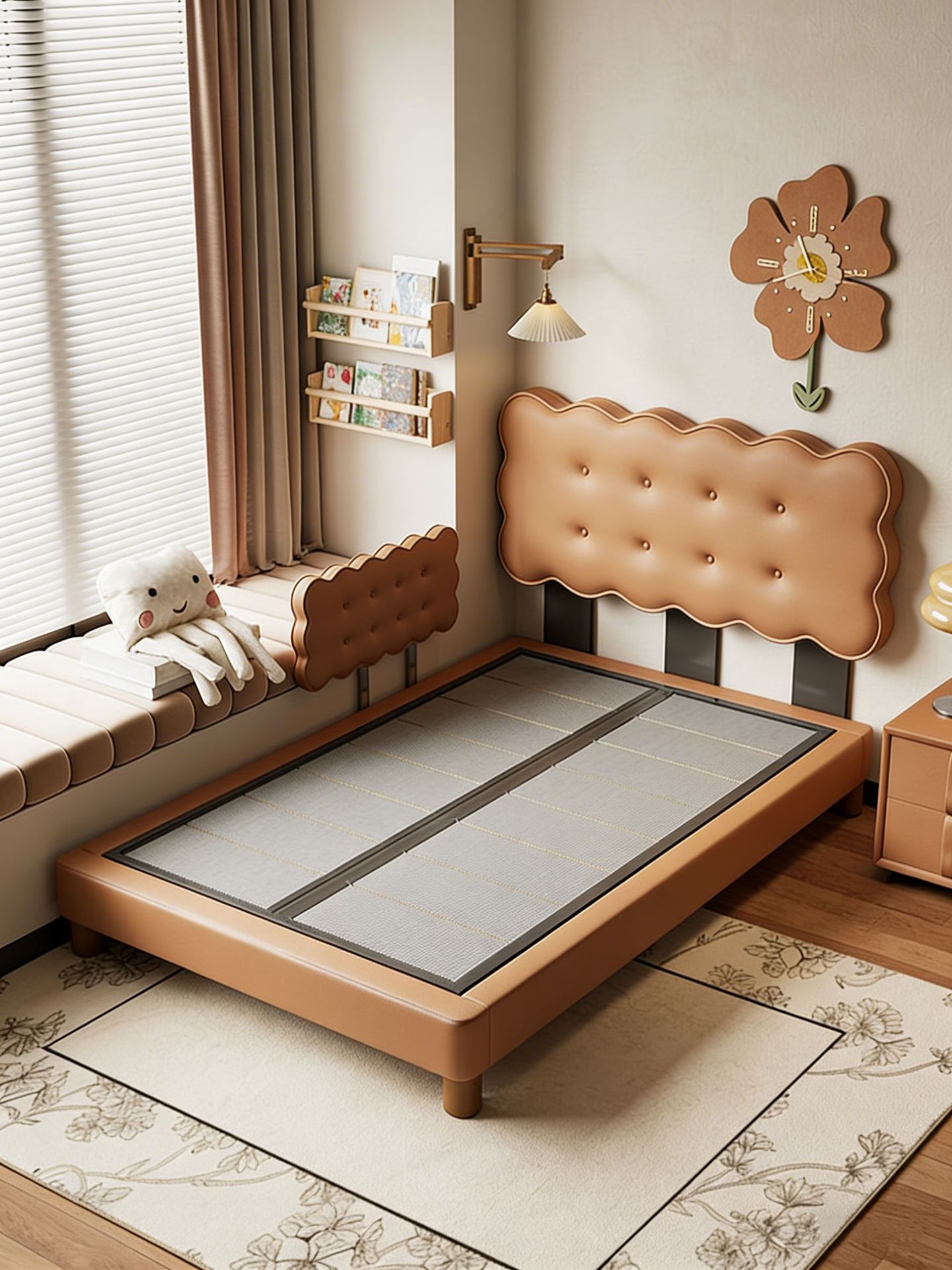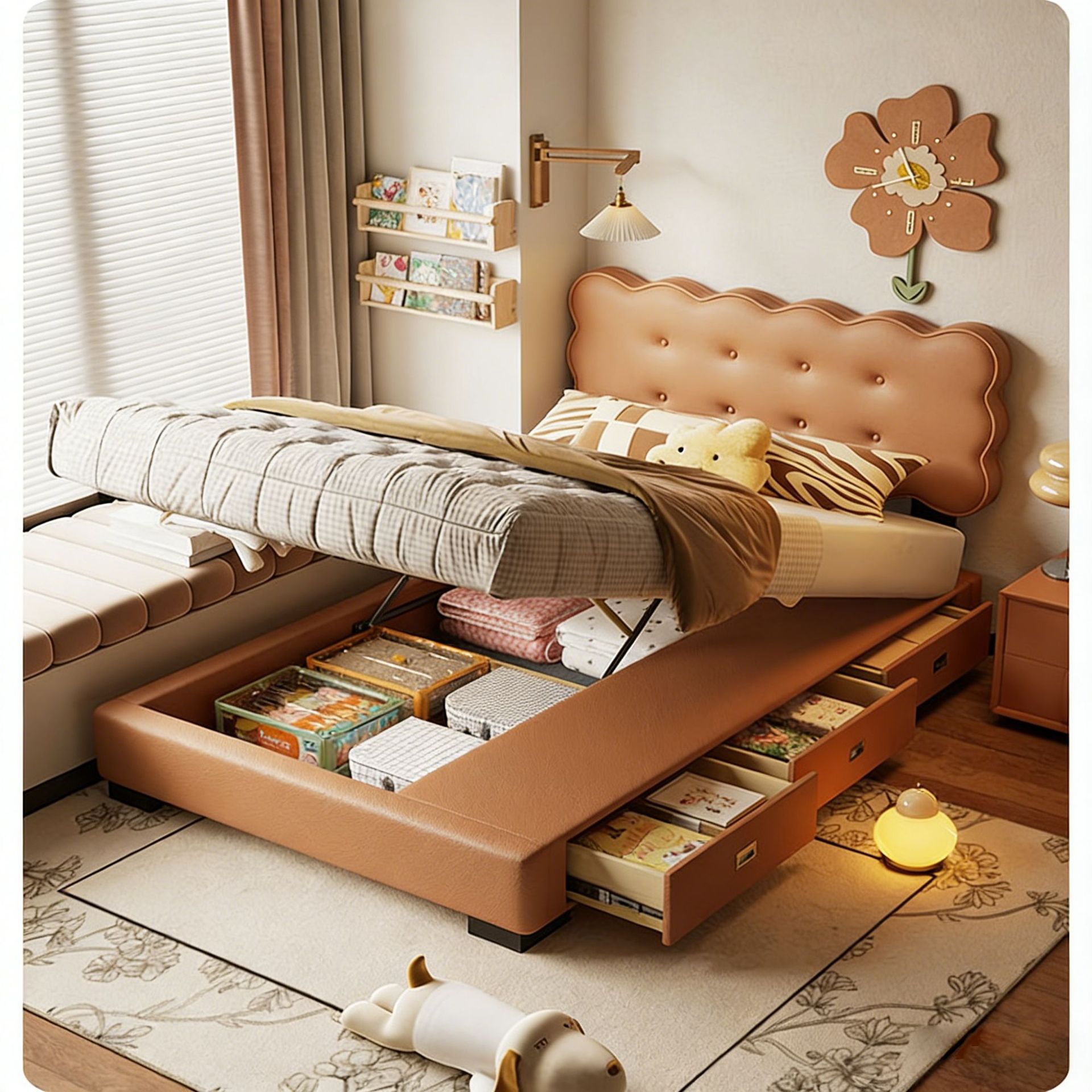 饼干床男孩床卧室现代简约抽屉储物小户型儿童房单人床公主真皮床