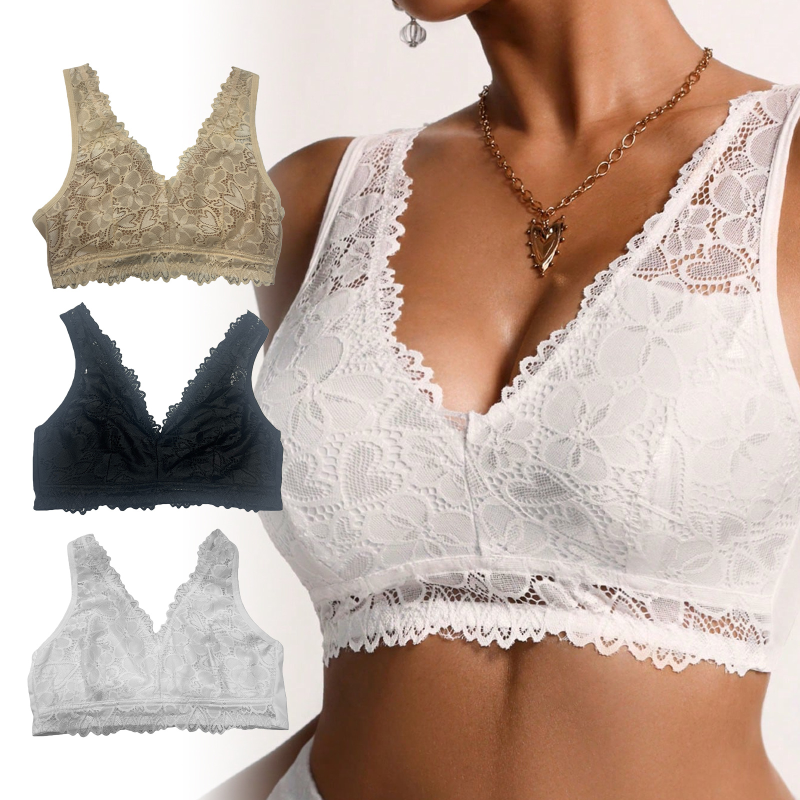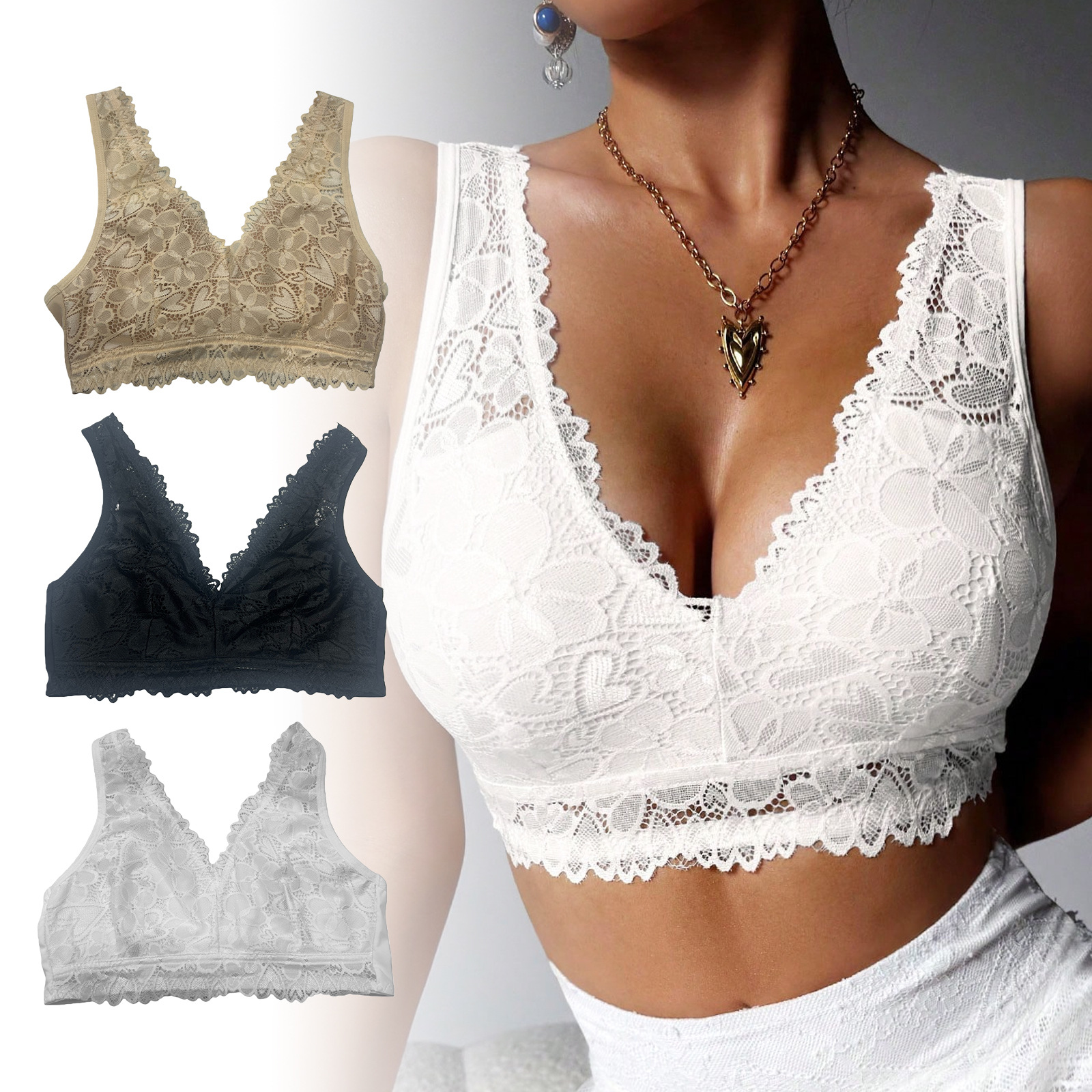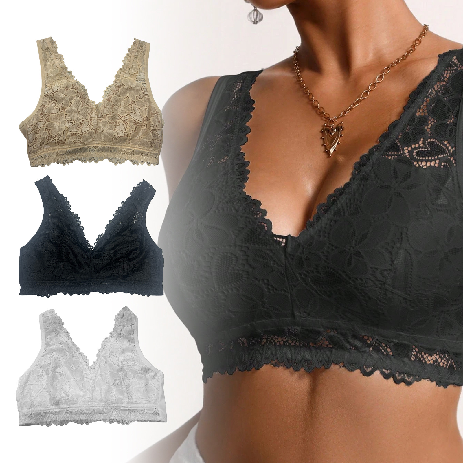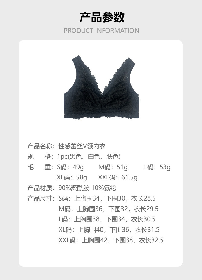 Zeriluna性感蕾丝V领内衣 亲肤透气设计时尚聚拢舒适无