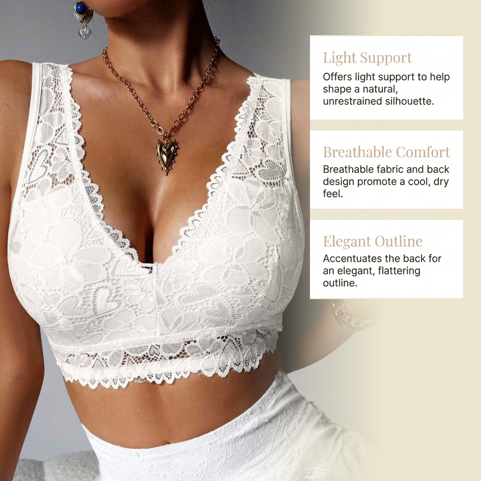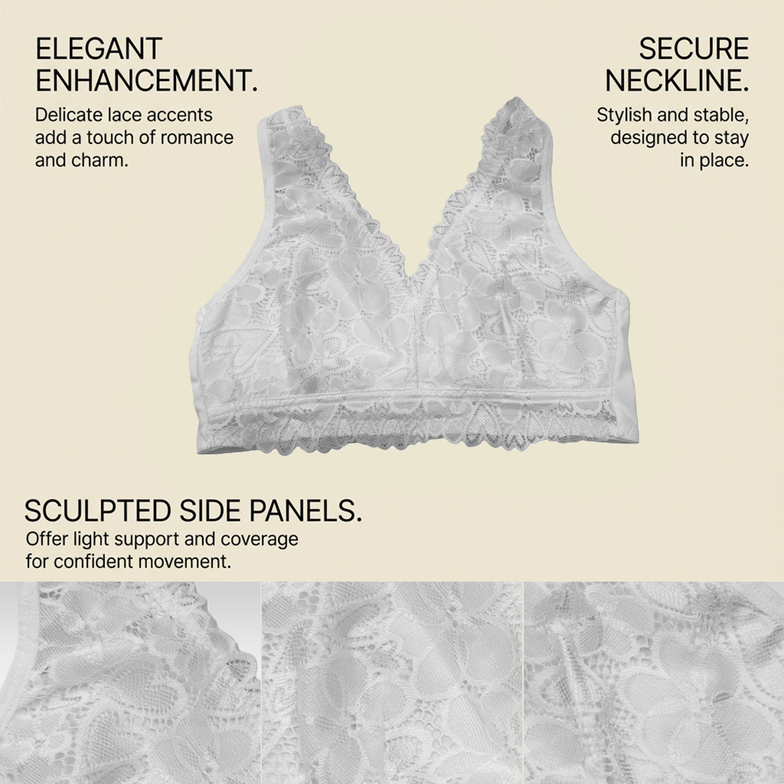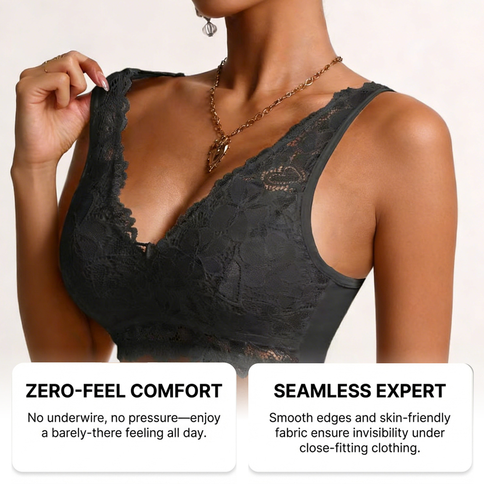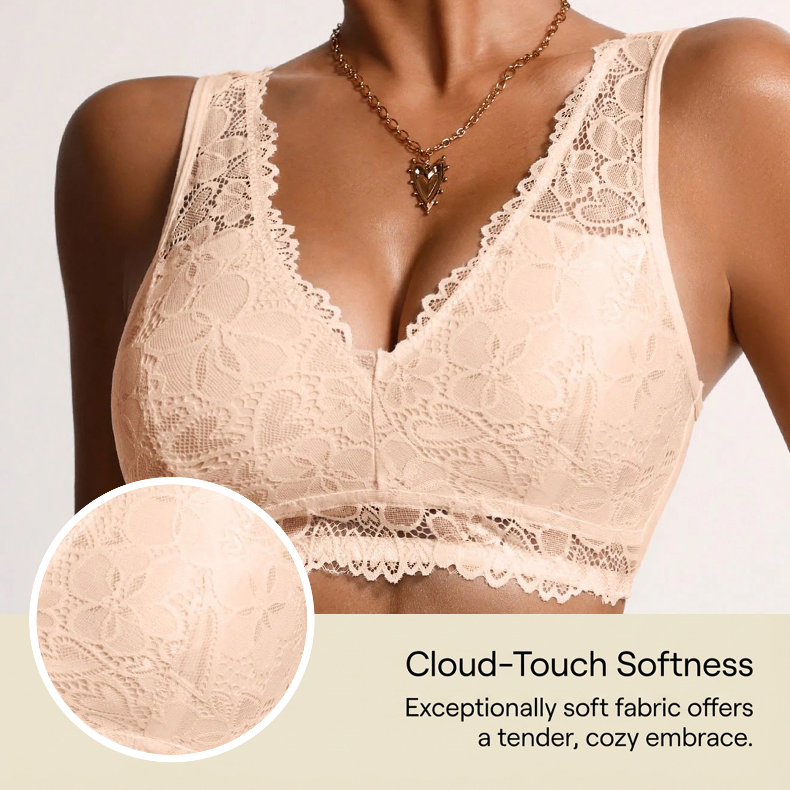 Zeriluna性感蕾丝V领内衣 亲肤透气设计时尚聚拢舒适无