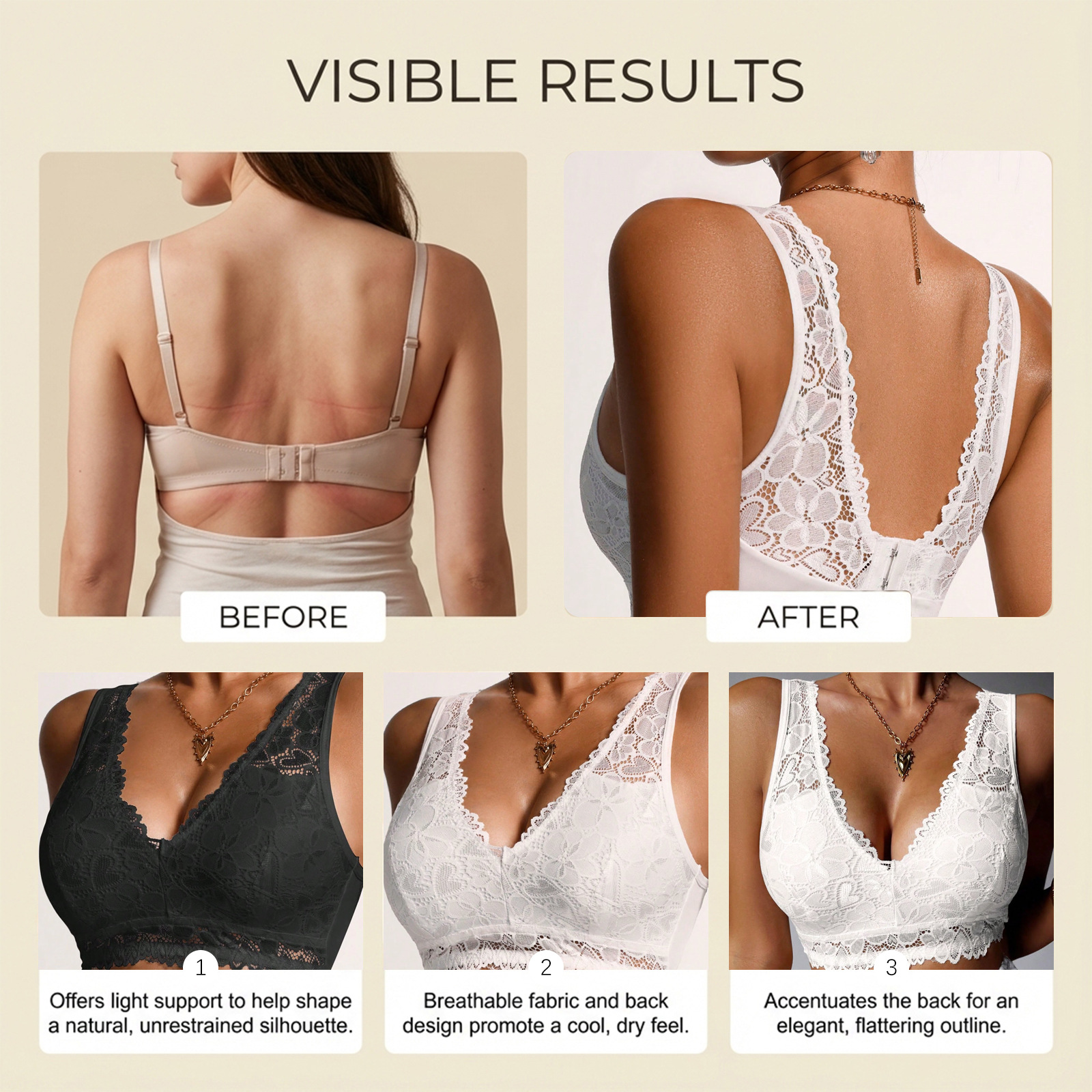 推荐理由:Zeriluna性感蕾丝V领内衣 亲肤透气设计时尚聚拢舒适无痕美背文胸