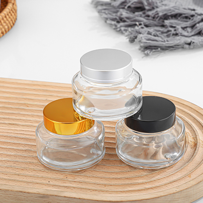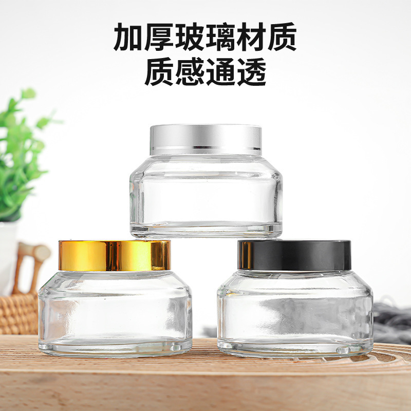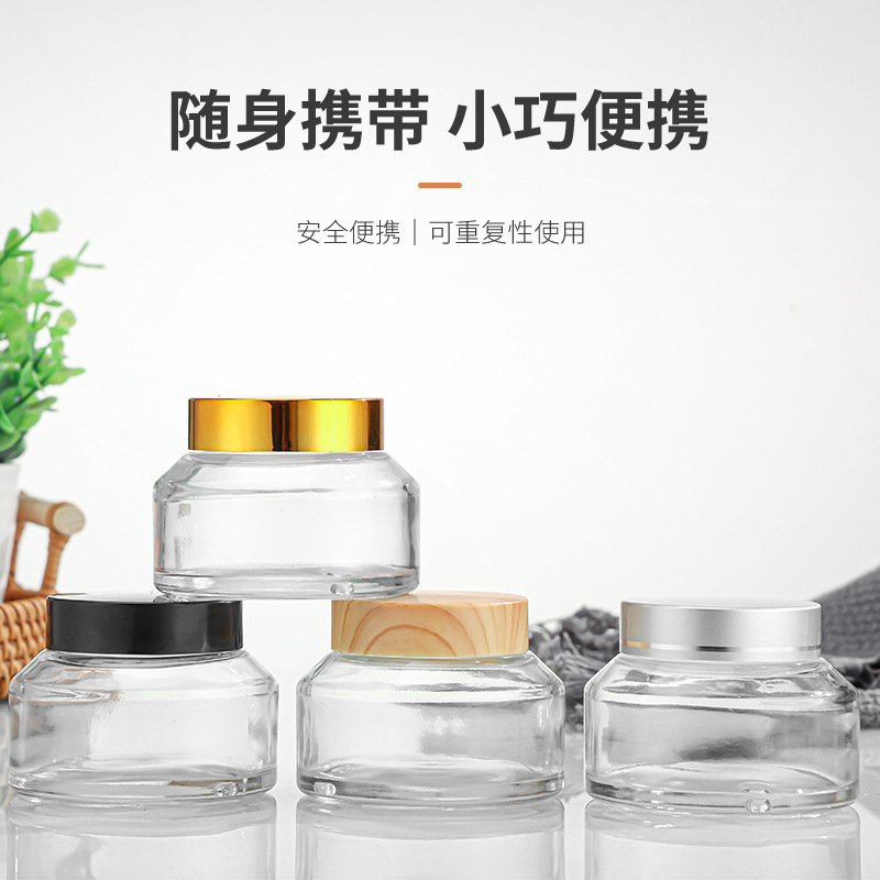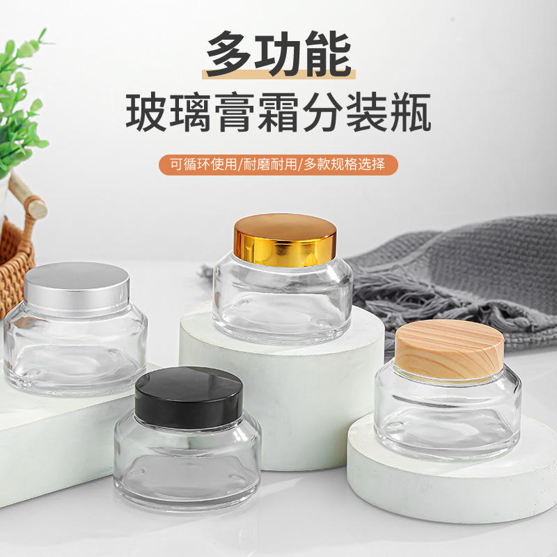 斜肩玻璃膏霜瓶100g木纹盖小样瓶金银盖面霜瓶化妆品分装瓶护肤品