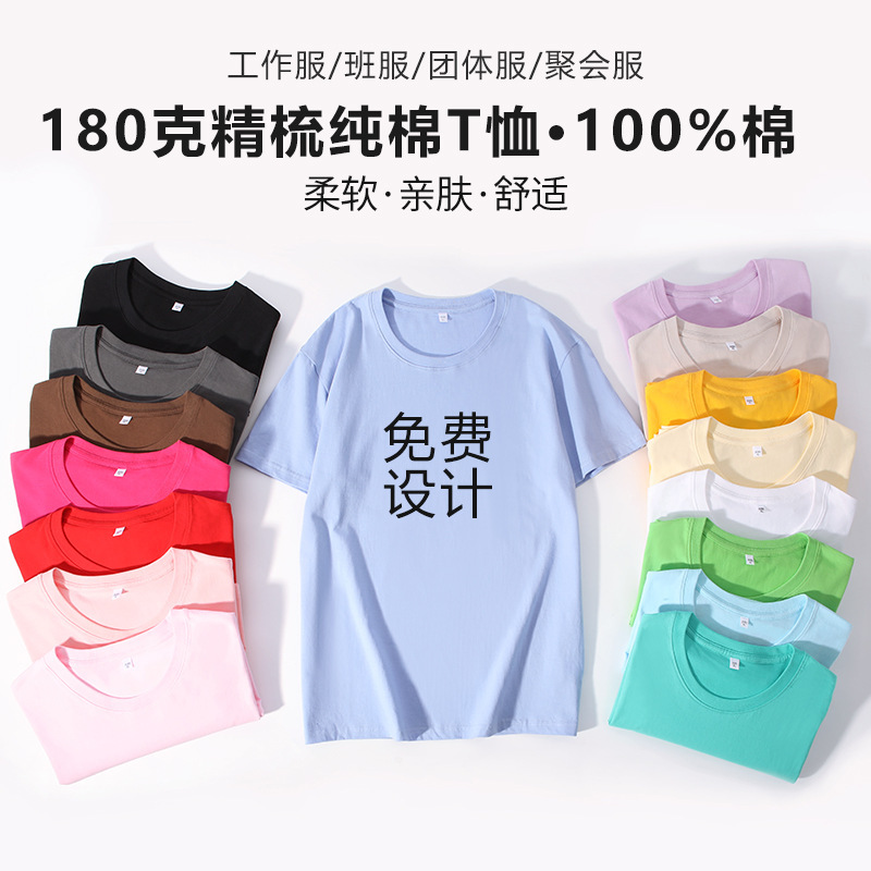 定制纯棉短袖T恤工作服圆领广告衫印logo团建短袖文化衫订做批发