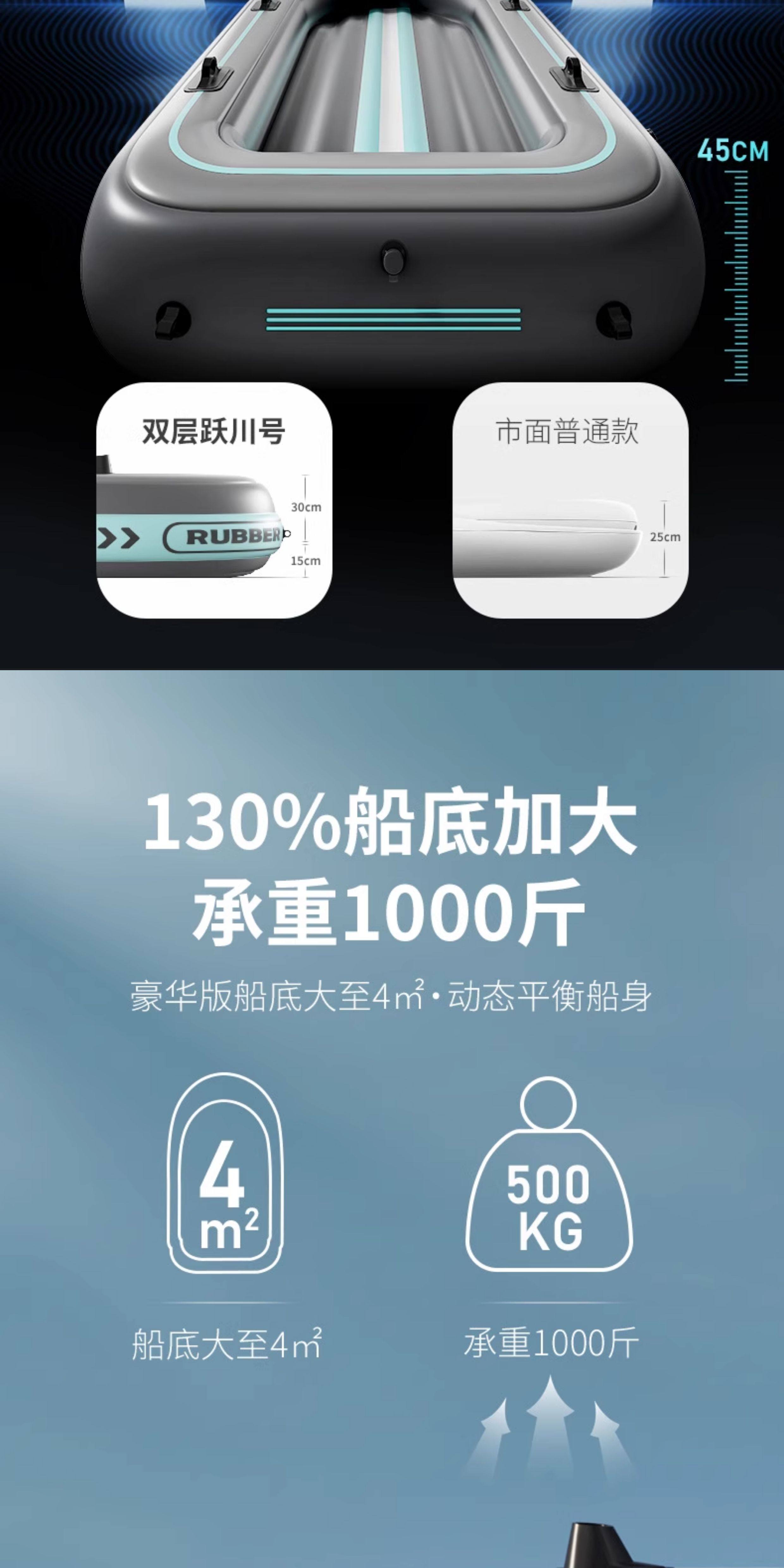 皮划艇充气船漂流冲锋舟野钓小船渔路亚艇气垫船橡皮艇钓鱼用船