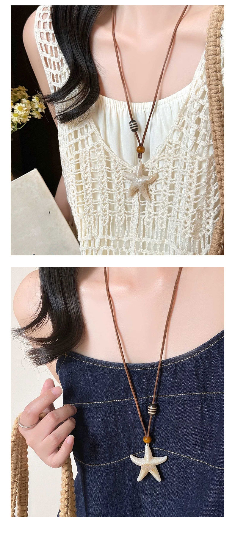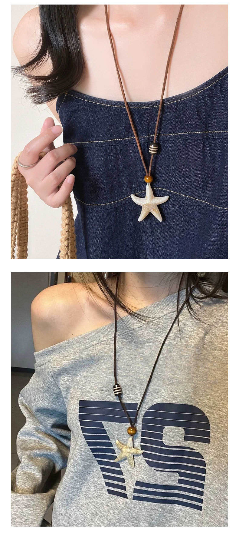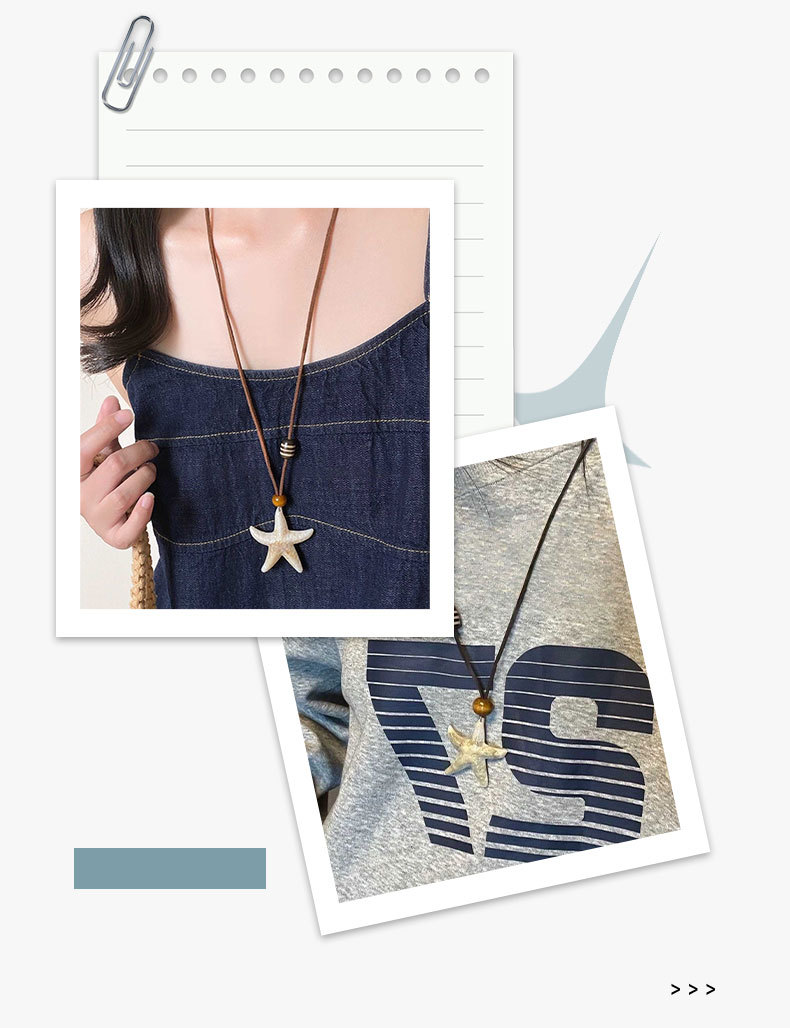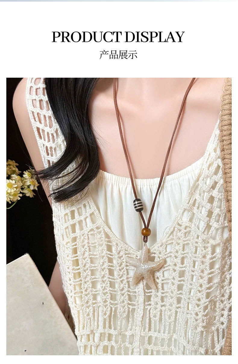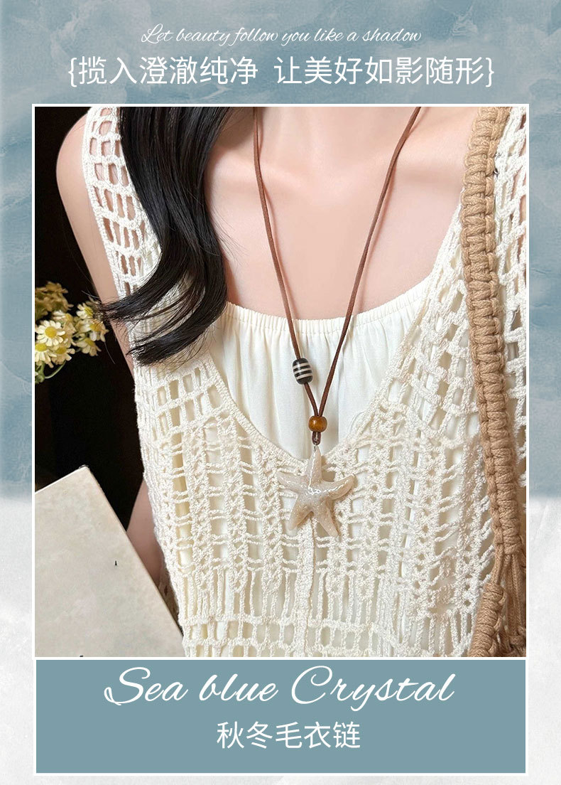 波西米亚海星秋冬毛衣链长款项链配饰款海边度假设计感项饰贝壳