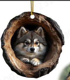 外贸爆款创意树洞猫咪小狗2D平面亚克力背包车载装饰品背包小挂件