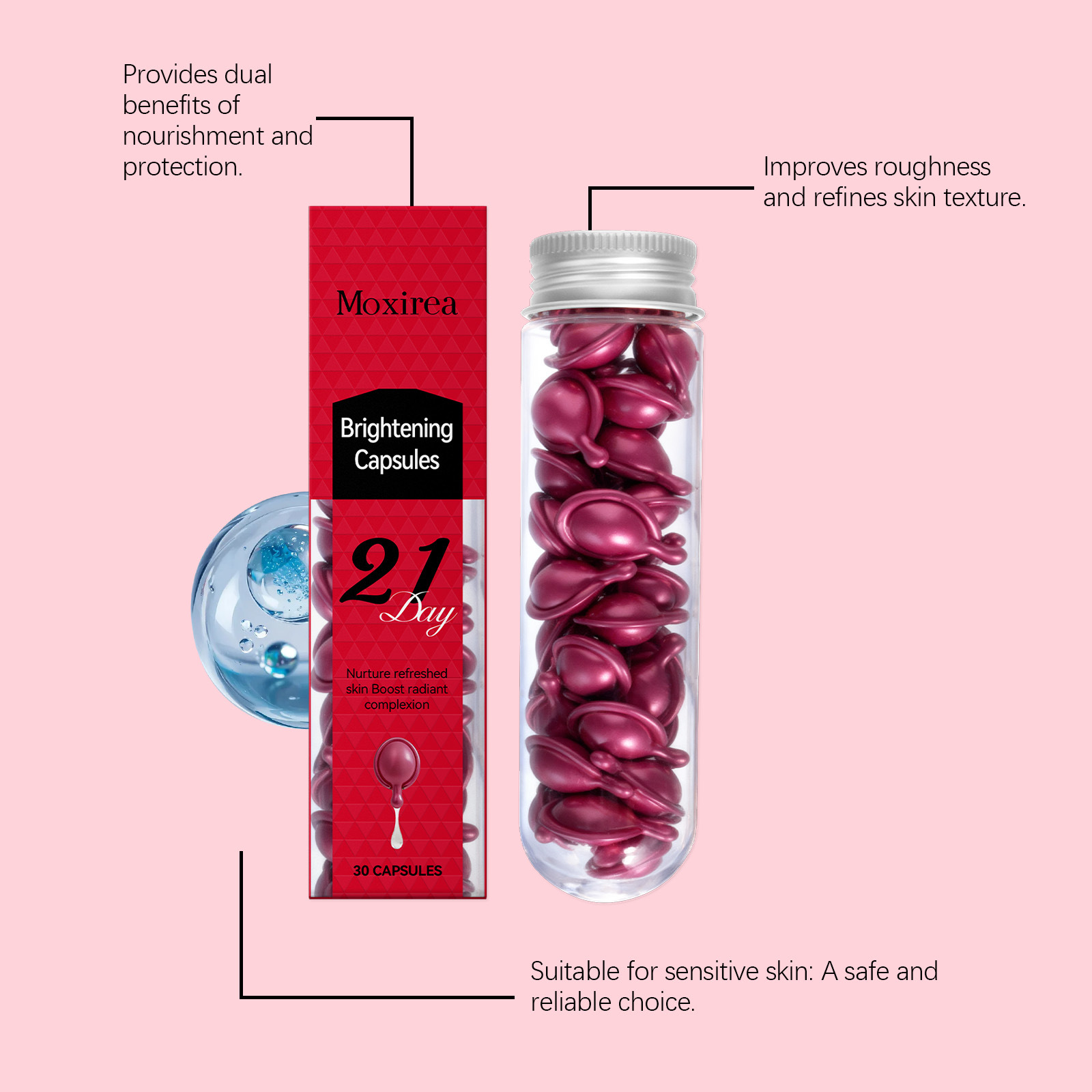 Moxirea 面部精华胶囊 滋润面部肌肤水润质感清透细腻精华胶囊