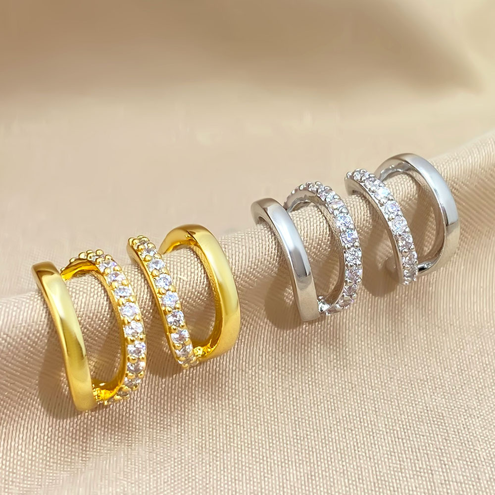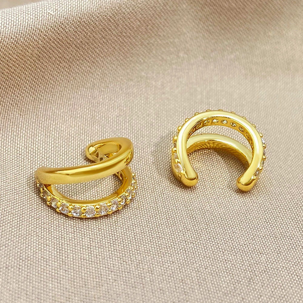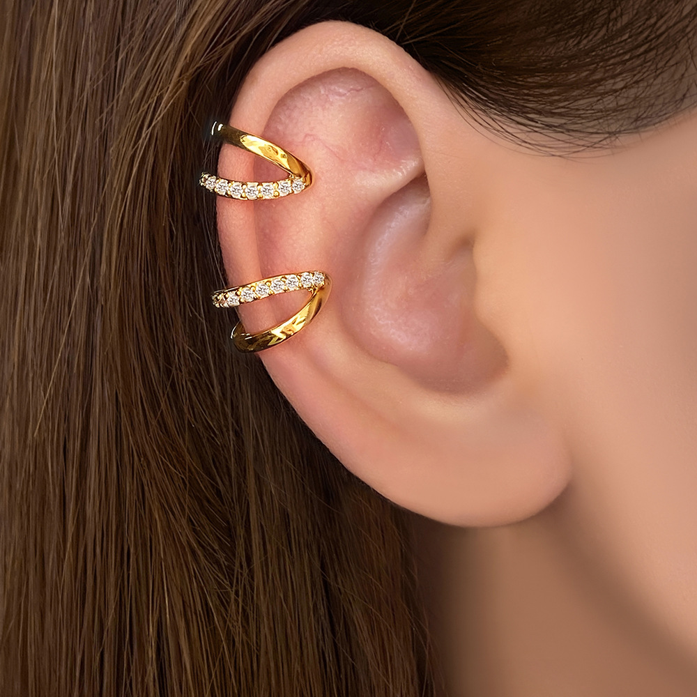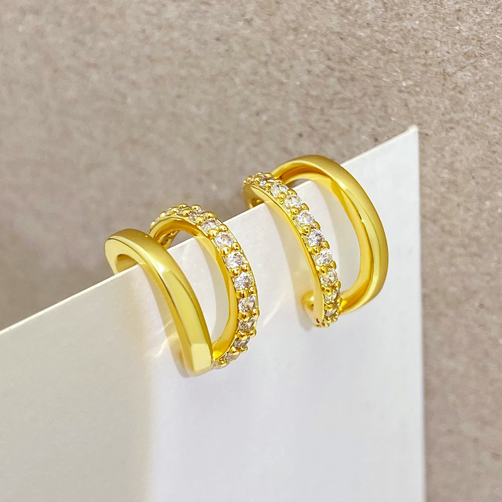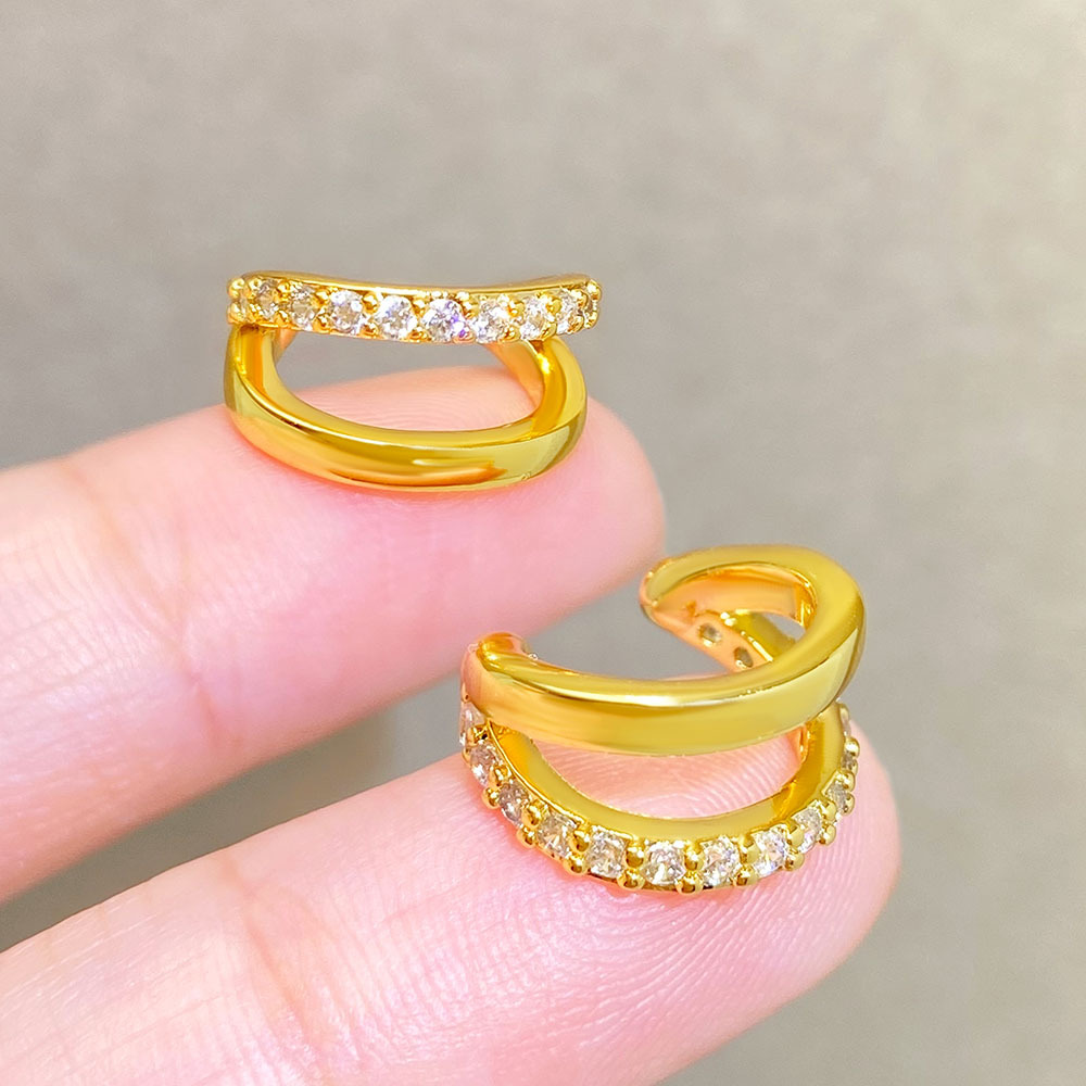欧美铜镀金镶锆石双层耳夹C型耳扣女ins风耳饰设计时尚耳环新款