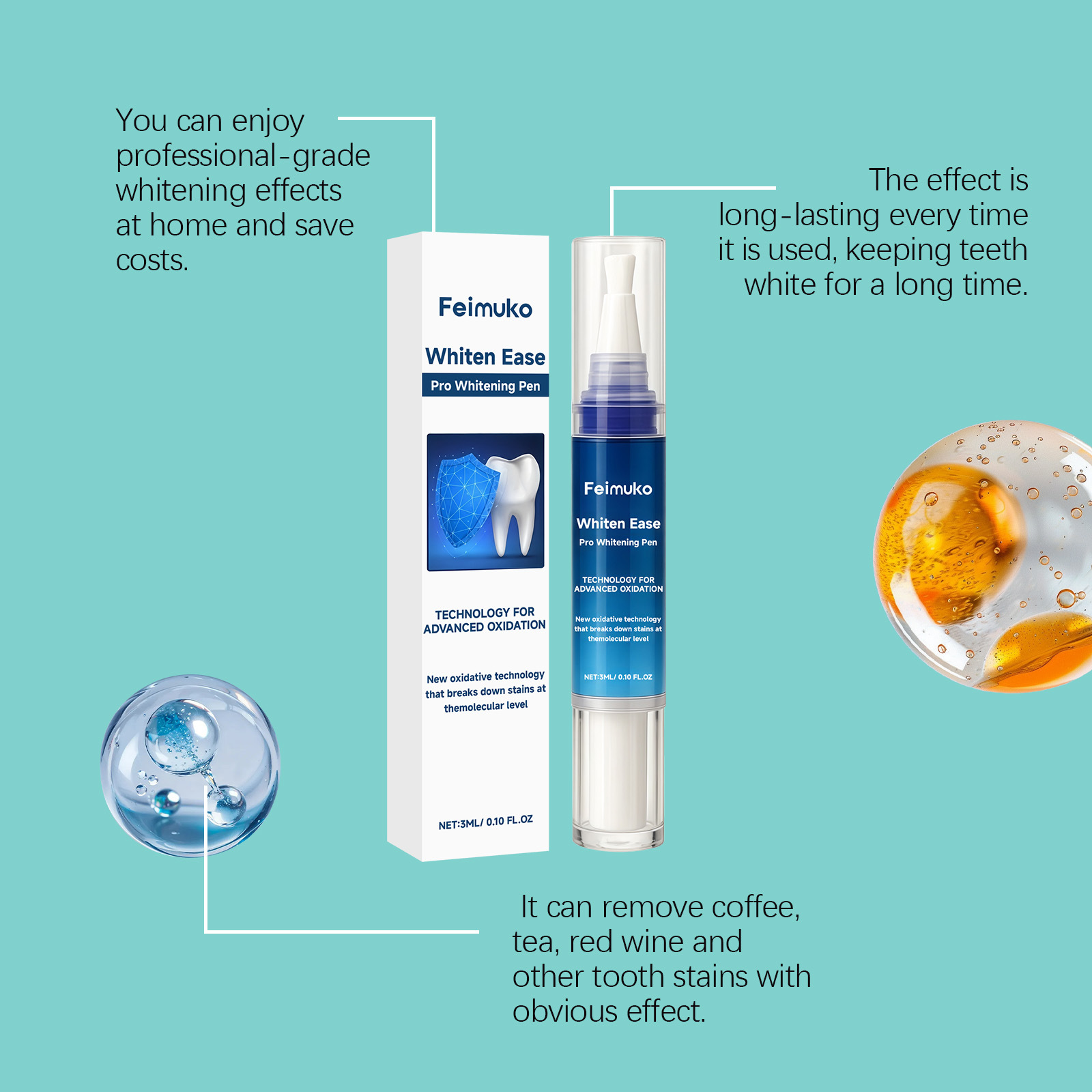 Feimuko 牙齿护理笔 温和清洁牙黄牙渍清新口腔牙齿便携护理笔