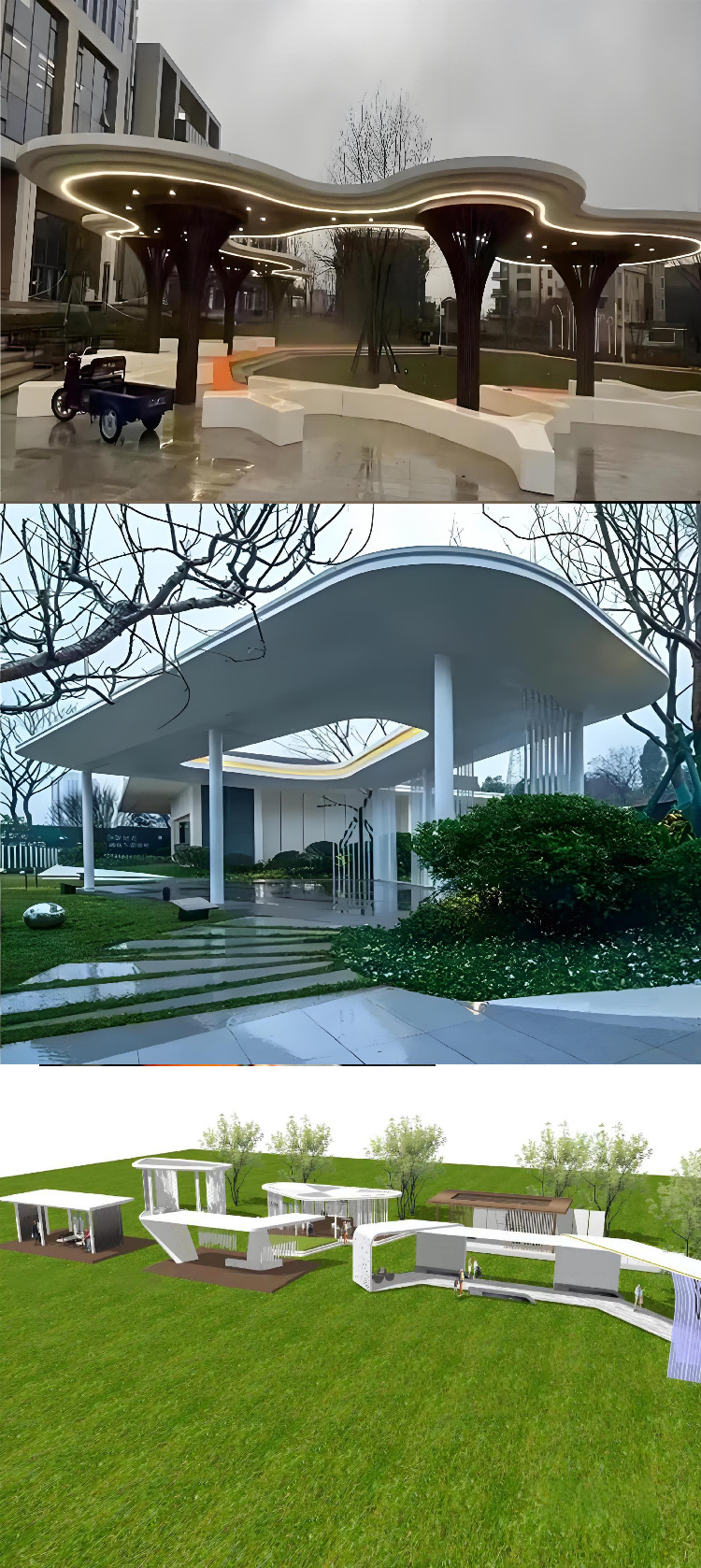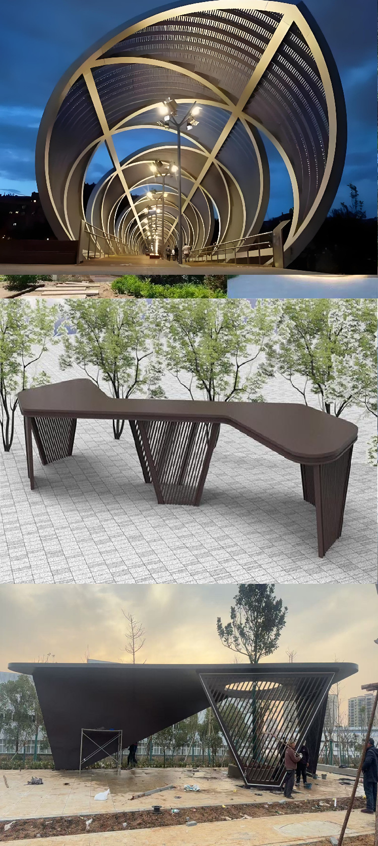 景观廊架凉亭户外异型不锈钢亭连廊文化长廊大型金属廊架定制厂家