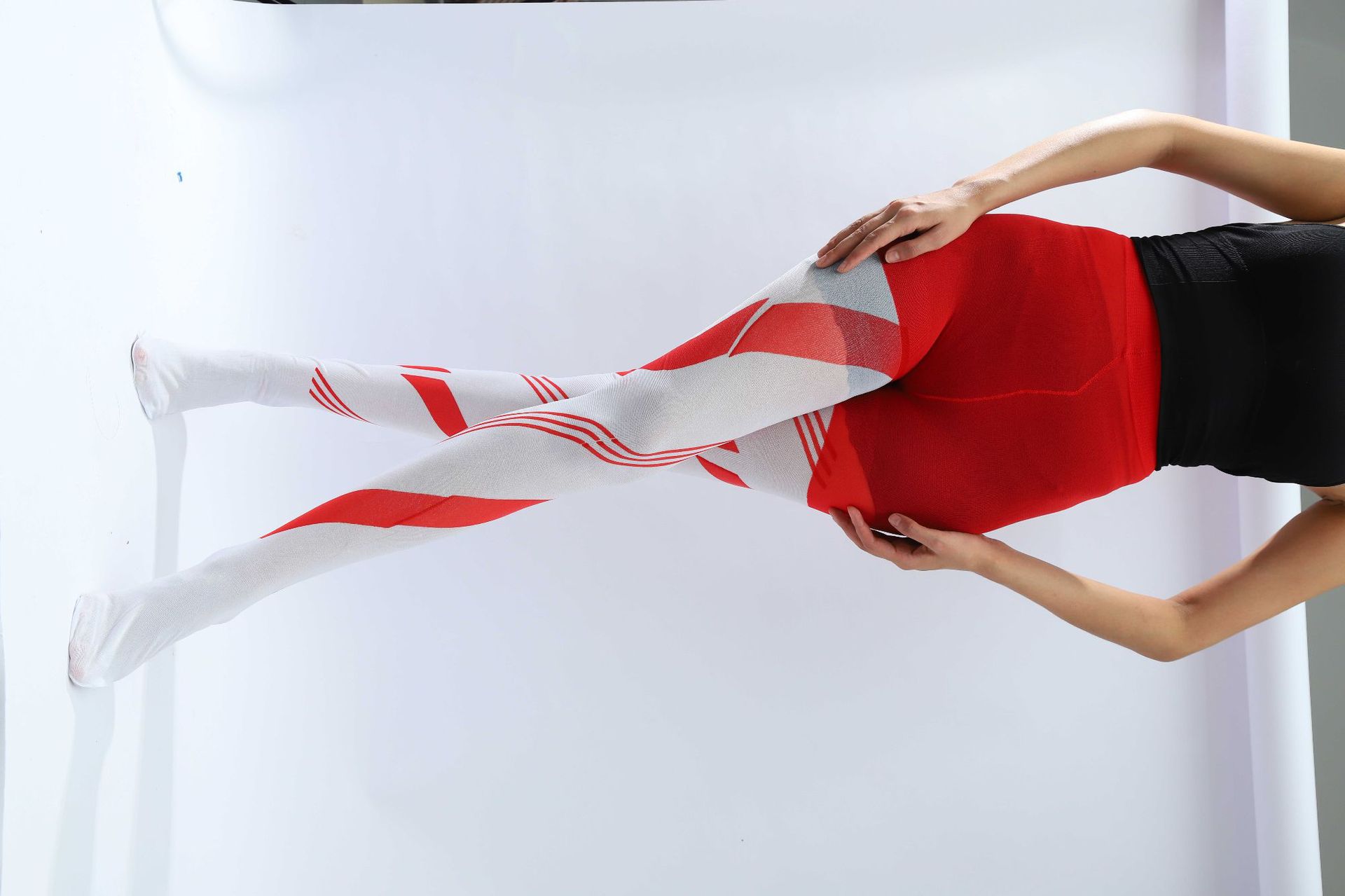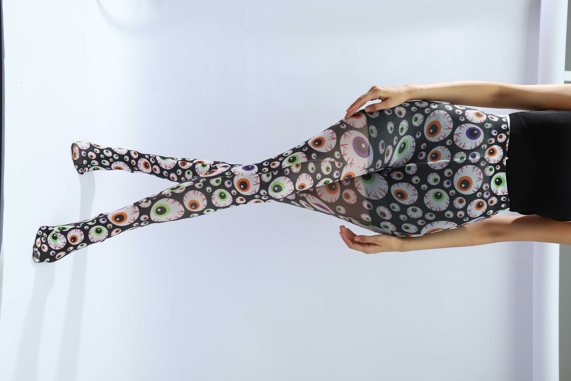 新款万圣节成人连裤袜 狂欢派对阴阳连裤袜舞会服装红黑踩脚裤