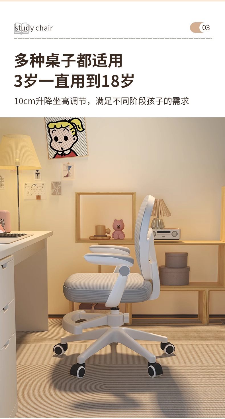 儿童学习椅子可定制人体工学椅靠背款电脑椅可升降座椅久坐书桌椅