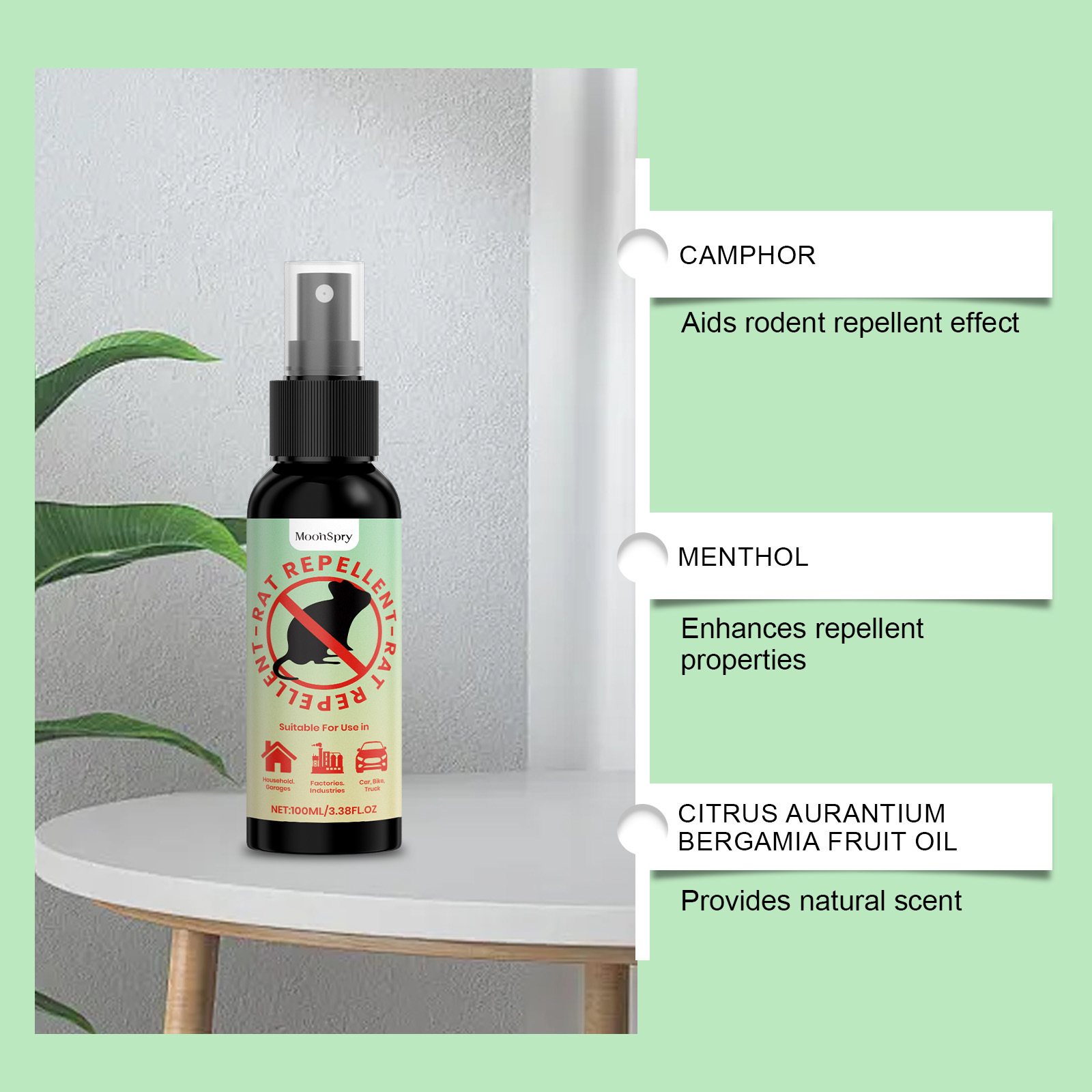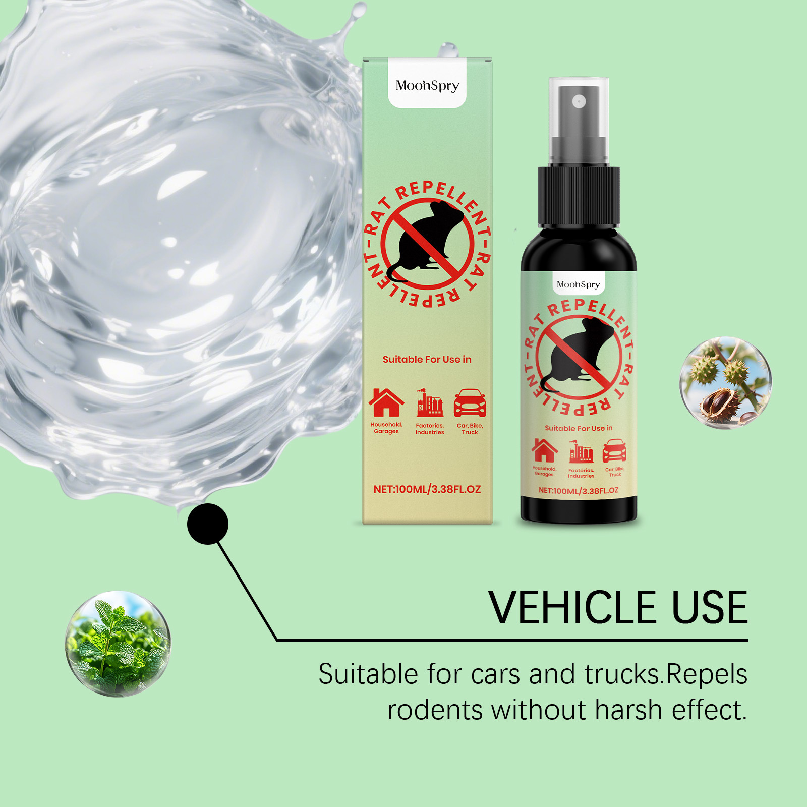 海外 MOONSPRY驱鼠喷雾 家居汽车驱鼠防啃咬便捷多场景适用