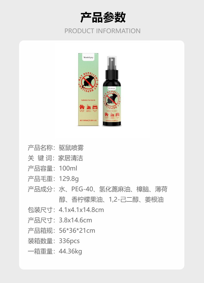 海外 MOONSPRY驱鼠喷雾 家居汽车驱鼠防啃咬便捷多场景适用,批发价,价格:6.3,厂家直销,海外 MOONSPRY驱鼠喷雾 家居汽车驱鼠防啃咬便捷多场景适用,免费拿样。