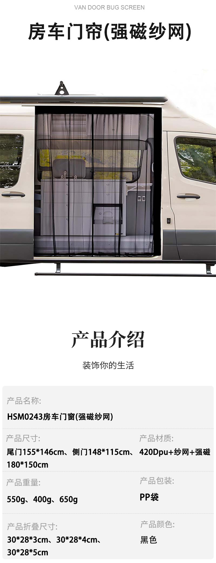 T5T6移门滑动门强磁磁吸房车门帘后尾门防蚊虫纱网窗帘露营车蚊帐