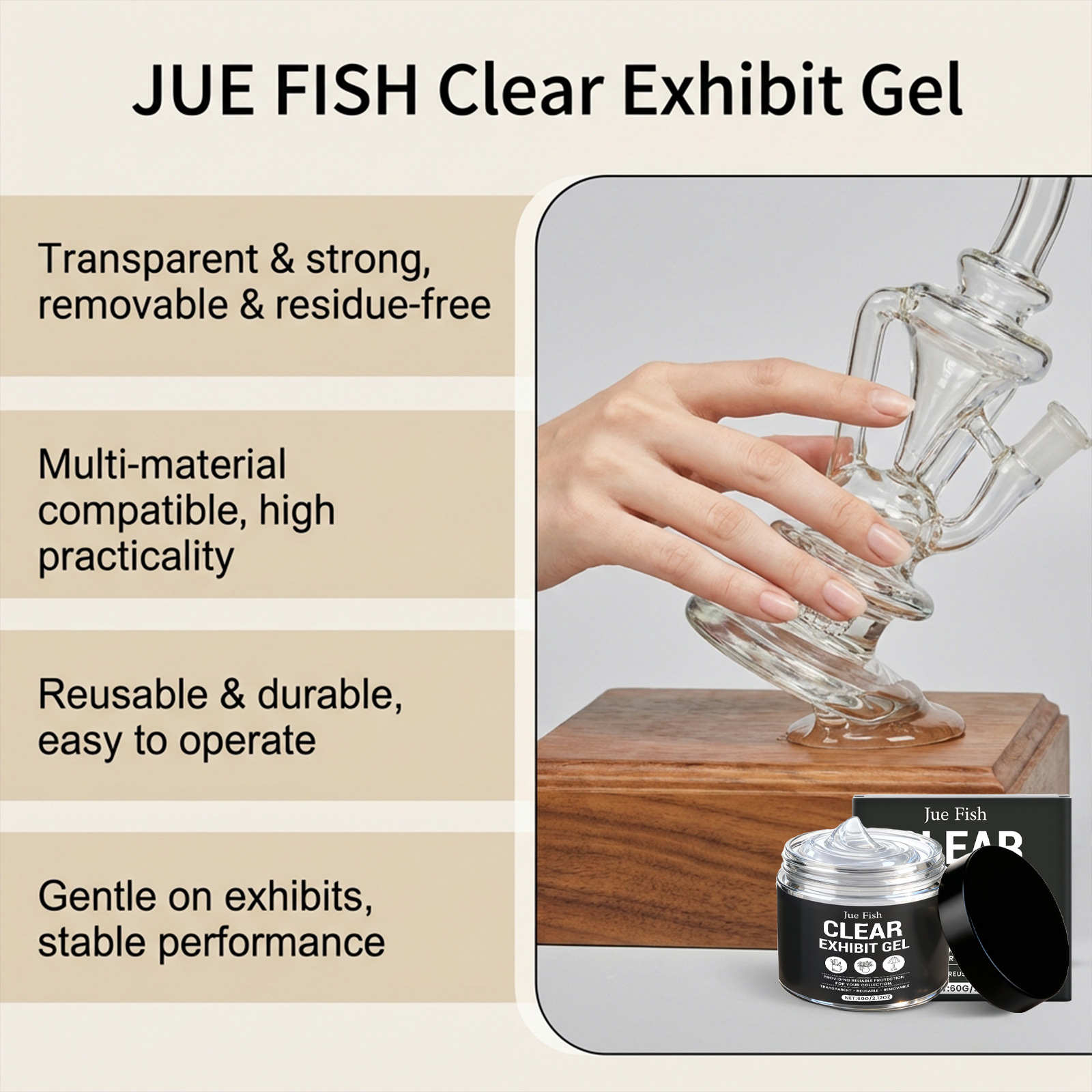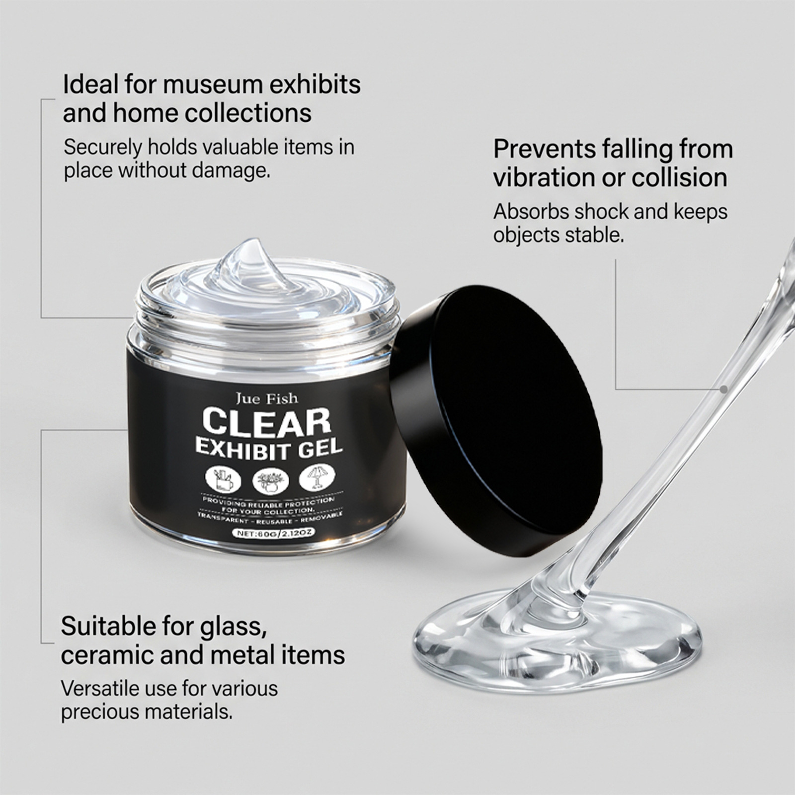 JUE FISH 透明展品胶 花瓶收藏品多材质适配透明牢固稳定无残留,批发价,价格:8,厂家直销,JUE FISH 透明展品胶 花瓶收藏品多材质适配透明牢固稳定无残留,免费拿样。