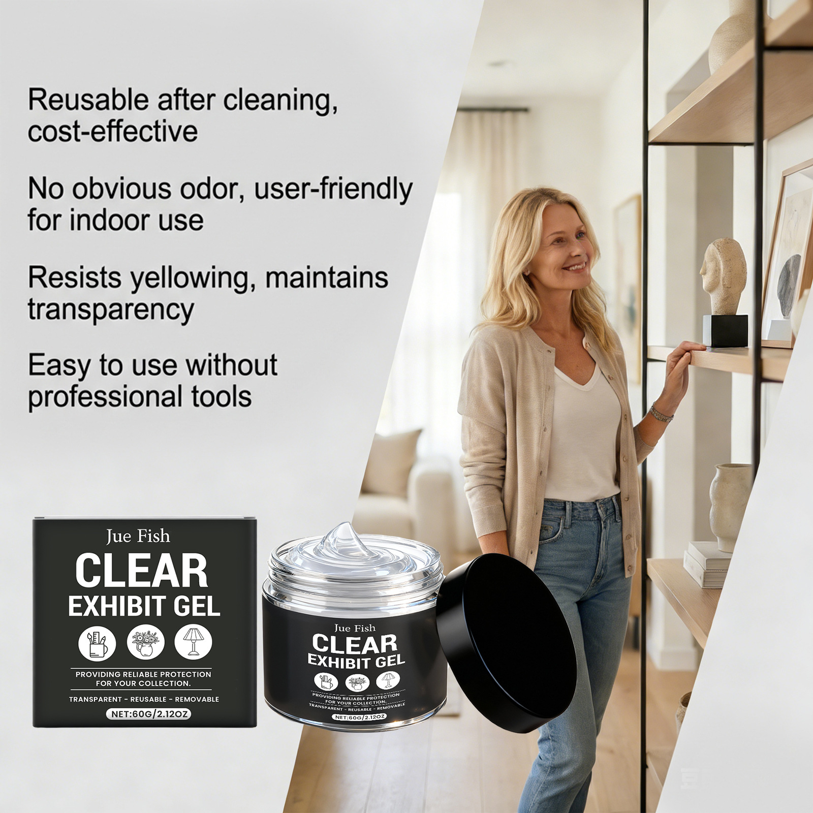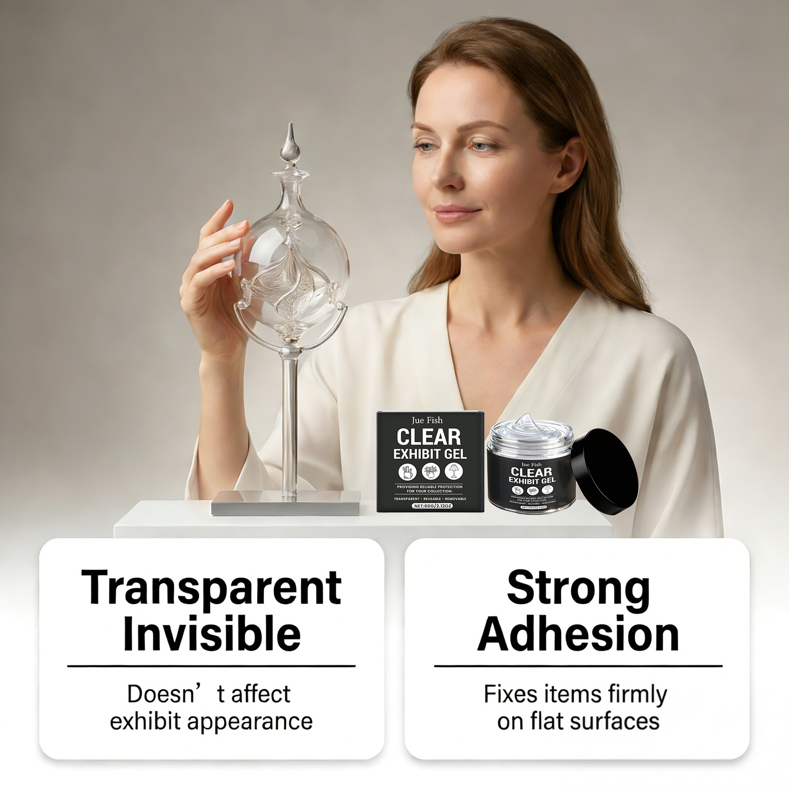 JUE FISH 透明展品胶 花瓶收藏品多材质适配透明牢固稳定无残留