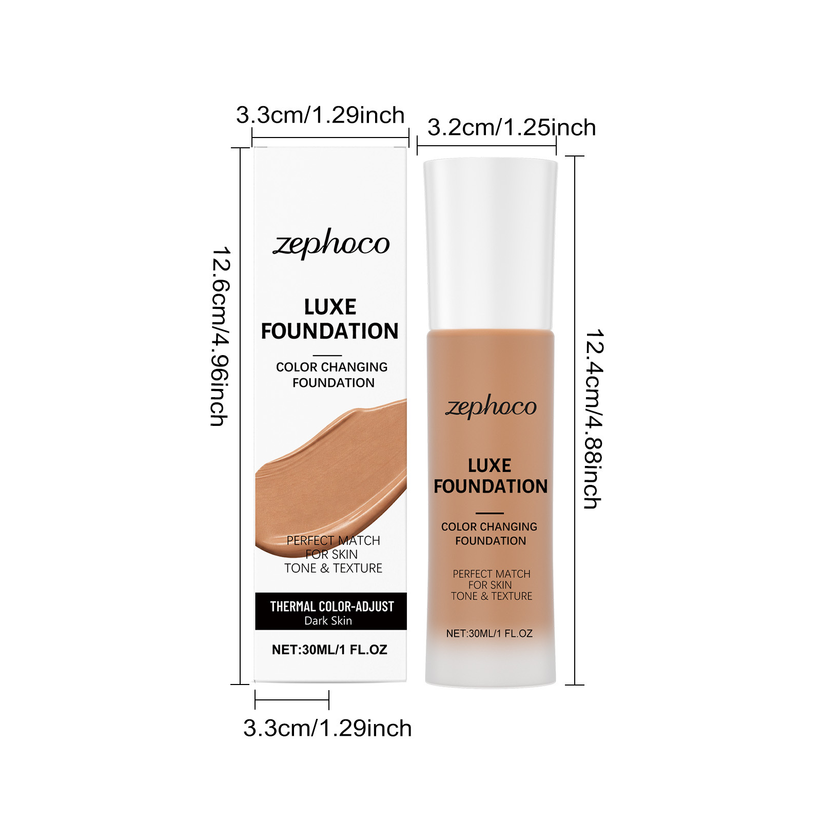 zephoco 温感调色粉底液(深肤色) 自然服帖隐形毛孔遮瑕轻薄底妆