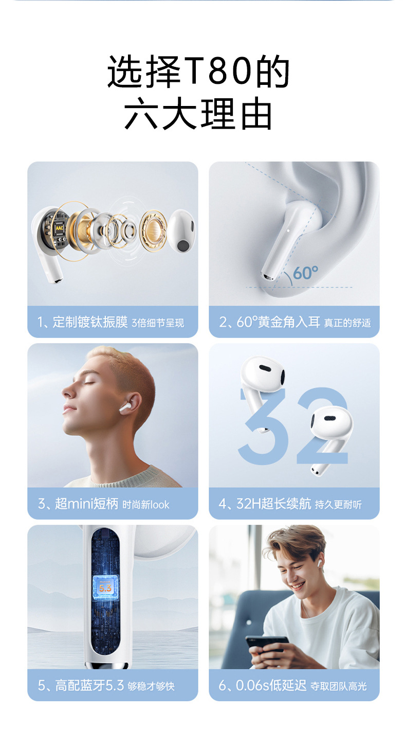 2026新款TWS蓝牙耳机 星闪无损音质T80超长续航,批发价,价格:20,厂家直销,2026新款TWS蓝牙耳机 星闪无损音质T80超长续航,免费拿样。