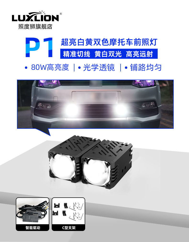 照度狮P1PLUS摩托车电动车LED远近一体透镜前车头灯内的前透镜