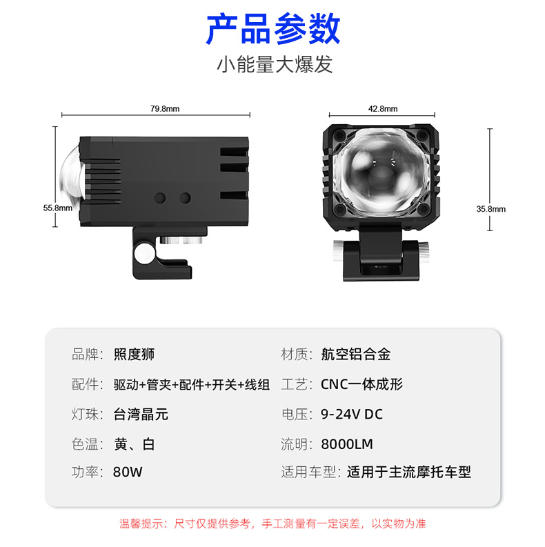 摩托车LED大灯 电动车射灯 激光大灯 远近光一体 黄白双色