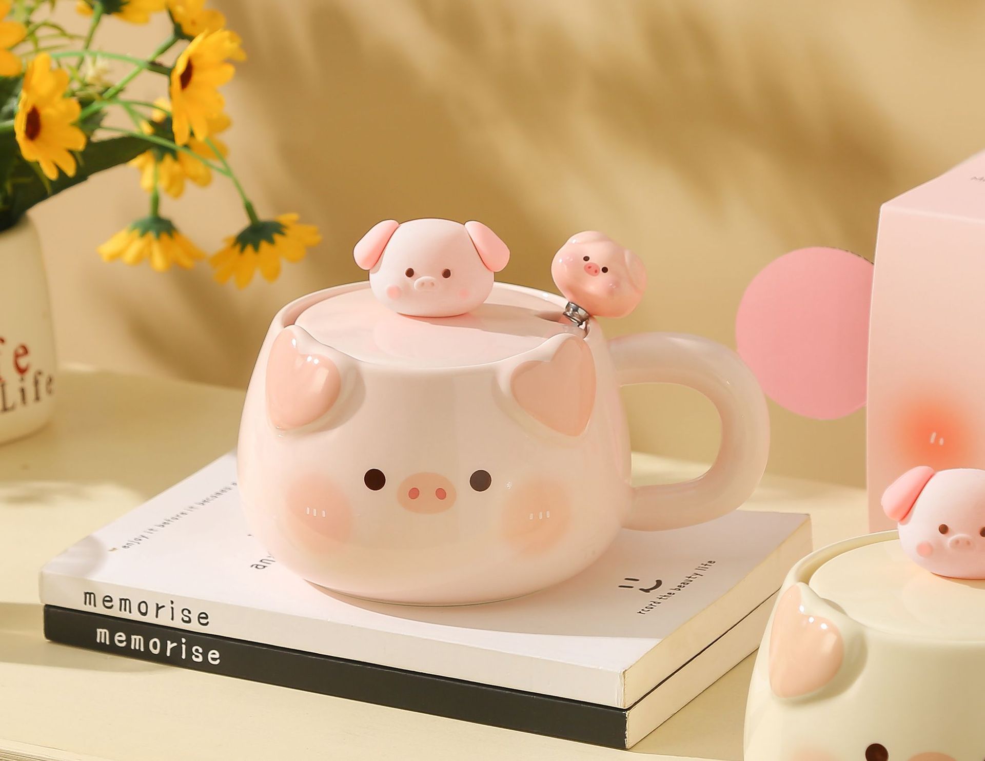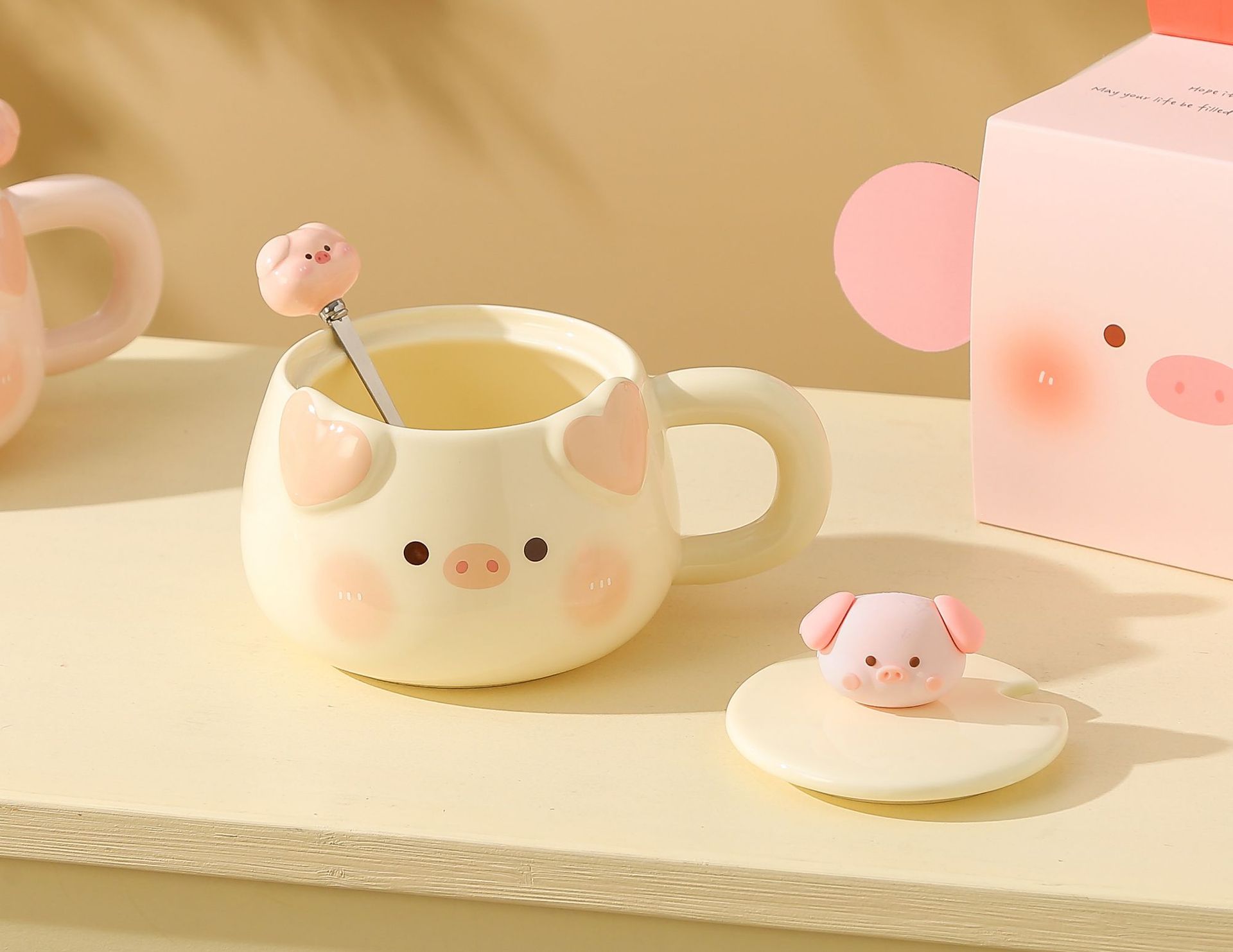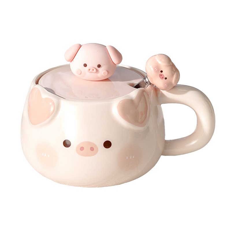 可爱小猪陶瓷马克杯带盖勺情侣款高颜值女生办公室生日礼物伴手礼