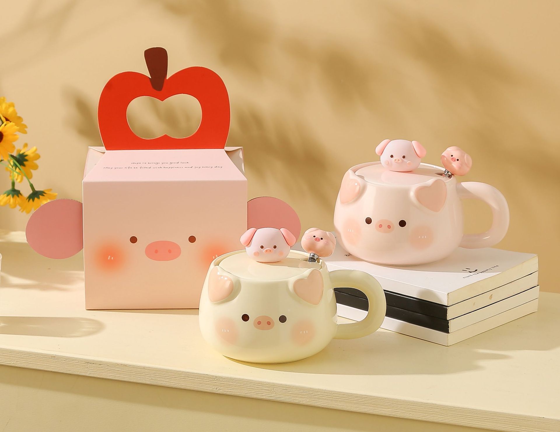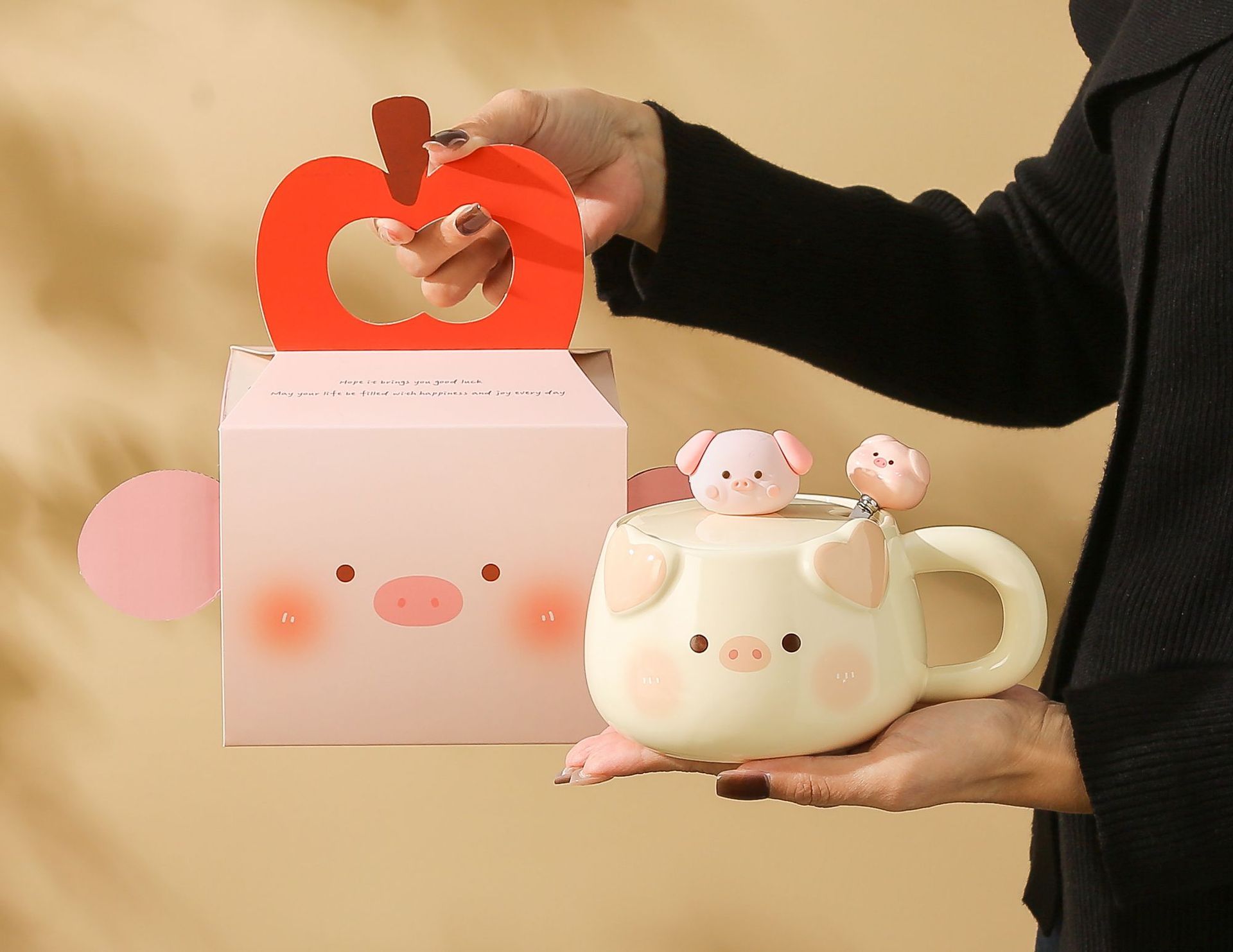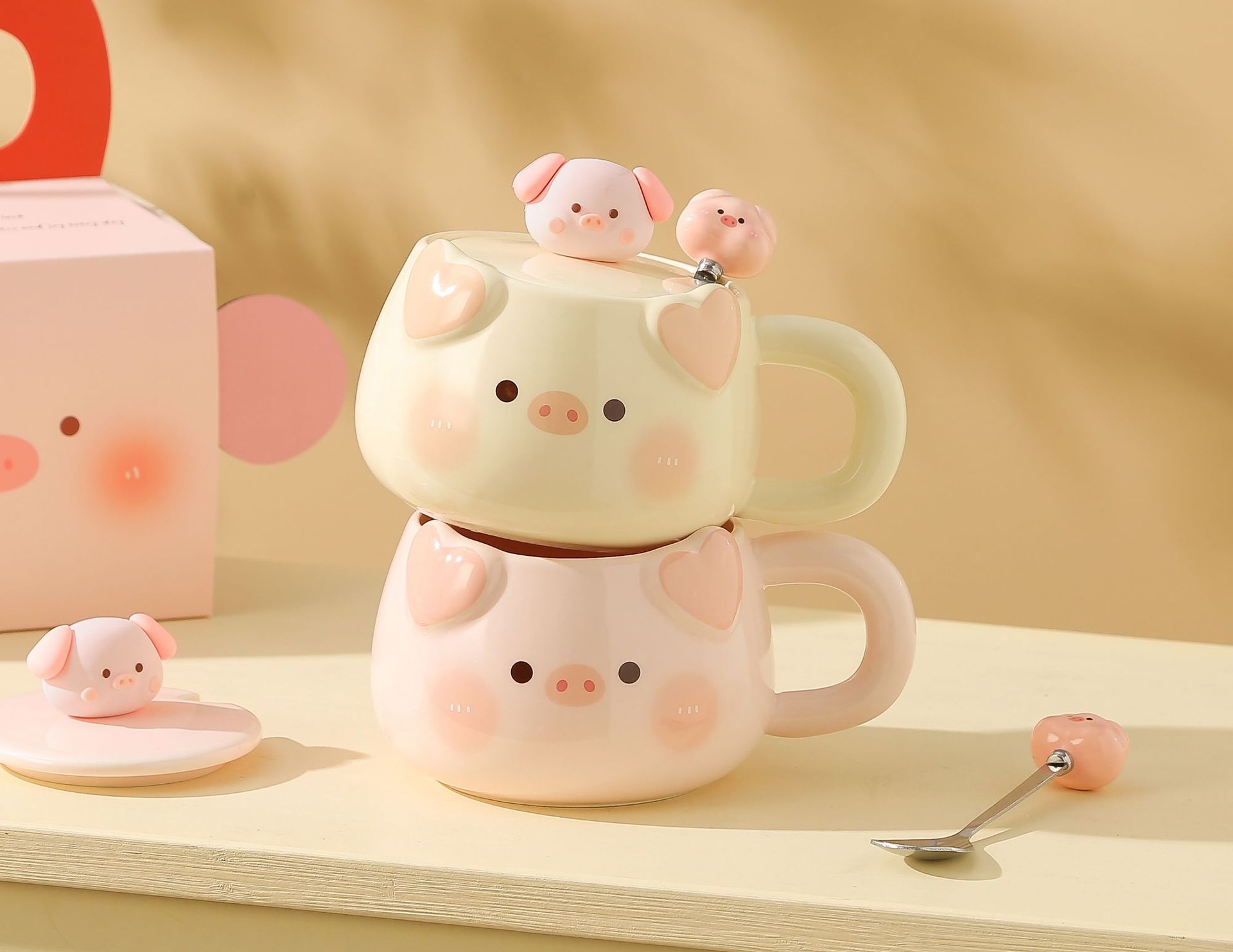 可爱小猪陶瓷马克杯带盖勺情侣款高颜值女生办公室生日礼物伴手礼
