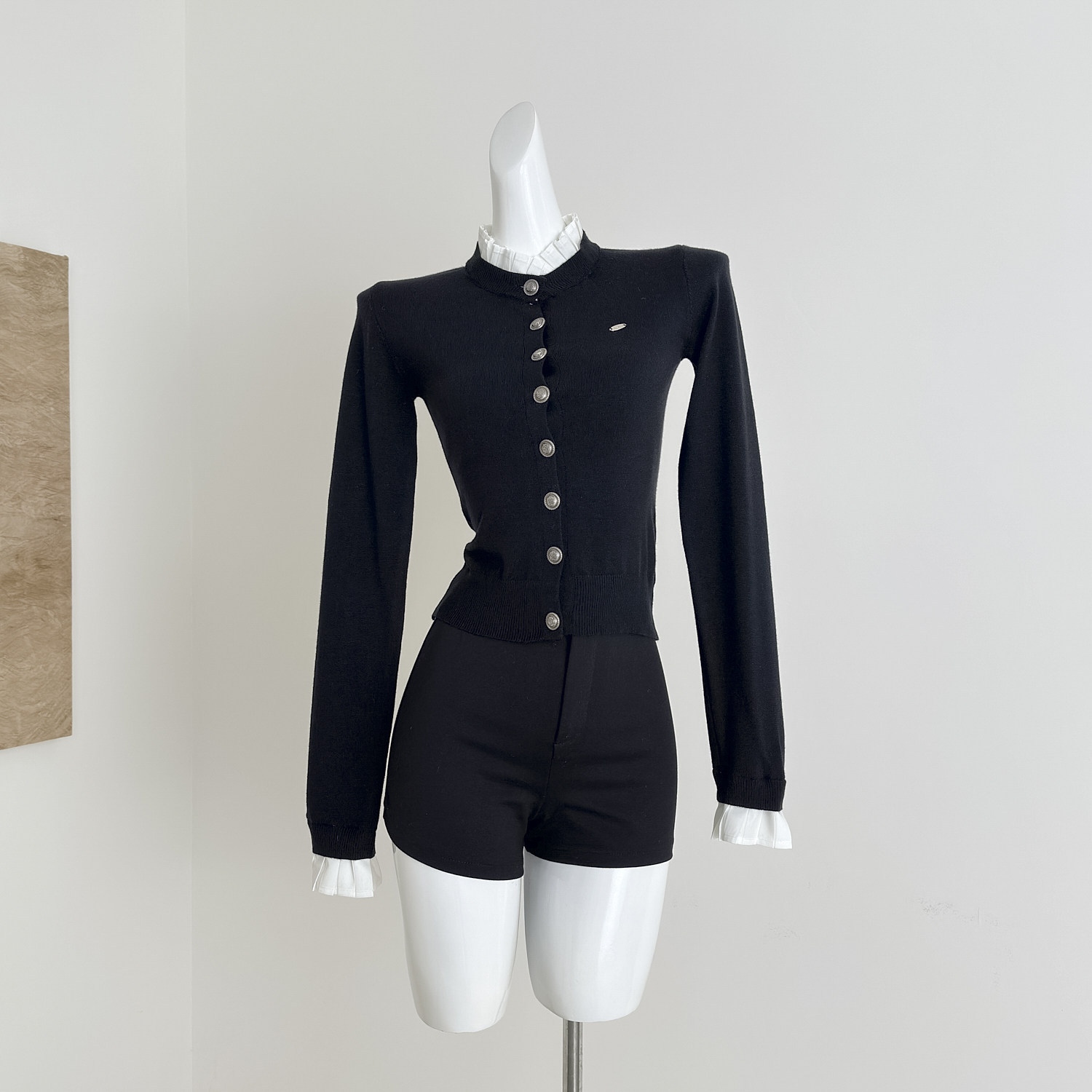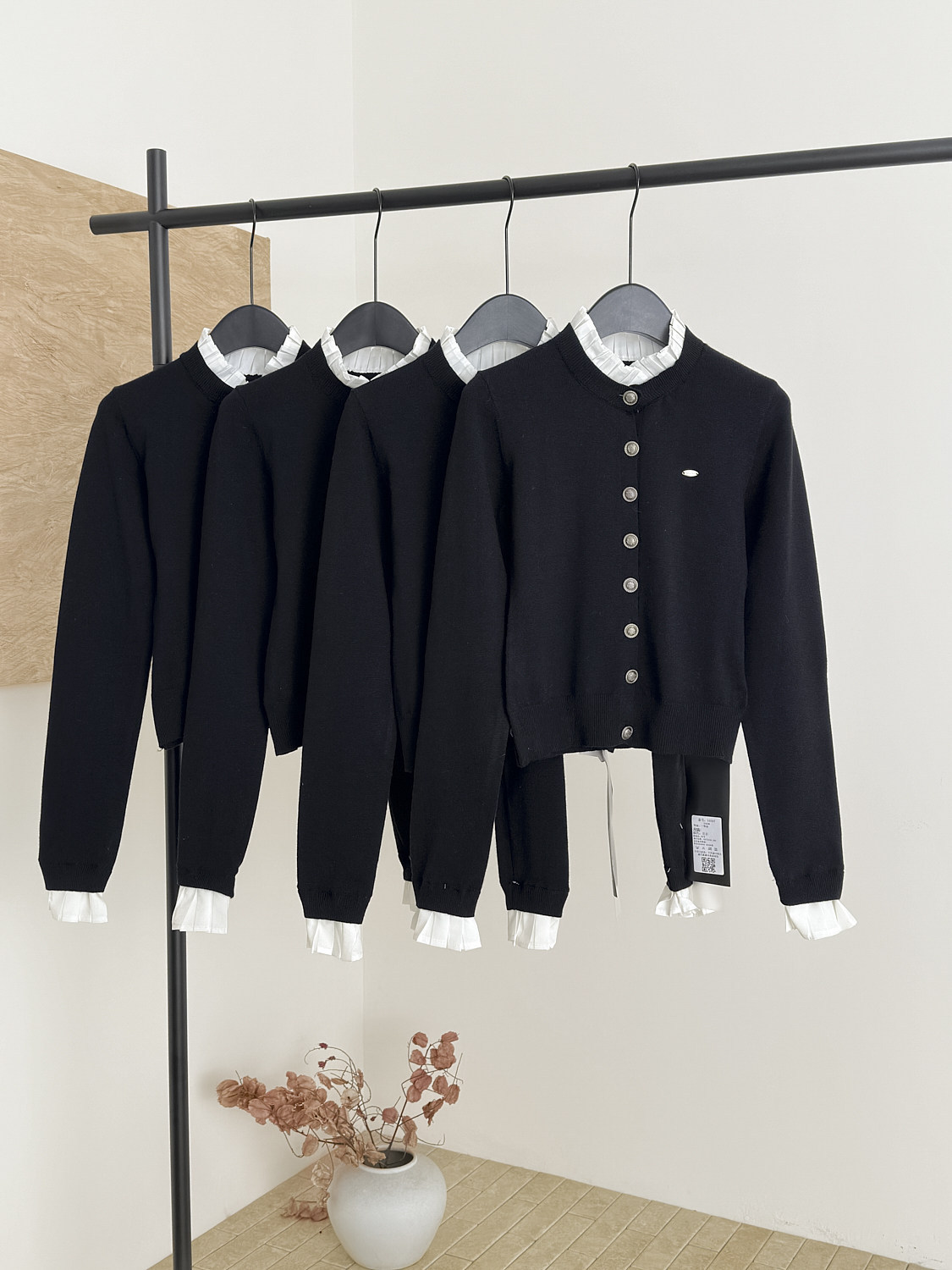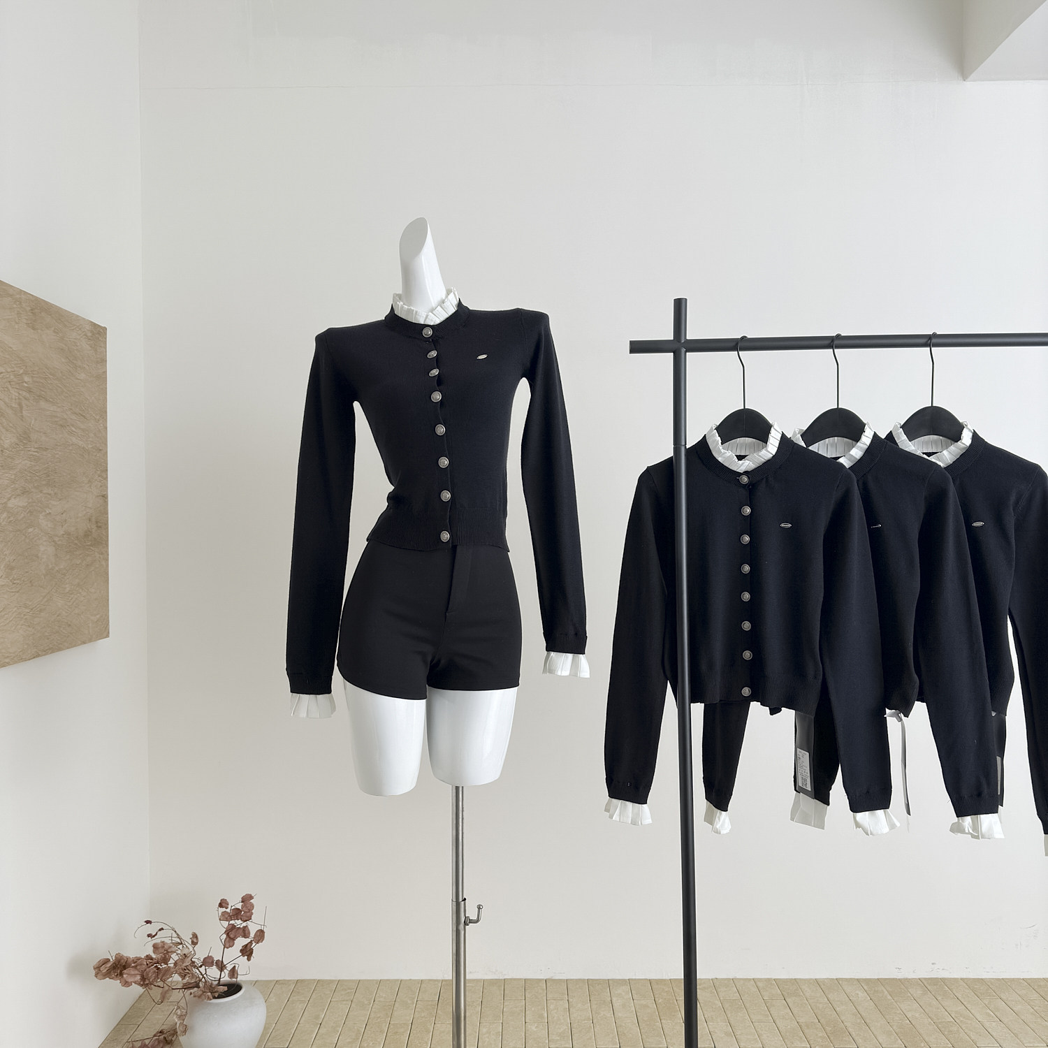 LaluneDuCie 法式宫廷风木耳边立领针织开衫女气质撞色修身上衣,批发价,价格:85,厂家直销,LaluneDuCie 法式宫廷风木耳边立领针织开衫女气质撞色修身上衣,免费拿样。