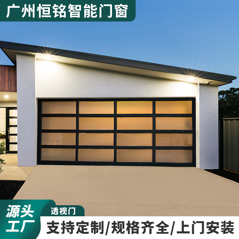 别墅自建房静音透明玻璃车库门洗车店铝合金框透视翻板门厂家批发
