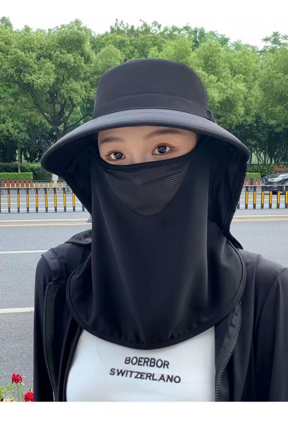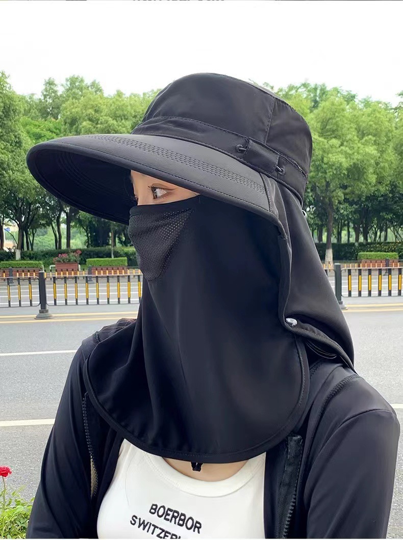 全方位一体防晒帽女护颈一体透气遮脸遮阳面罩防紫外线户外太阳帽
