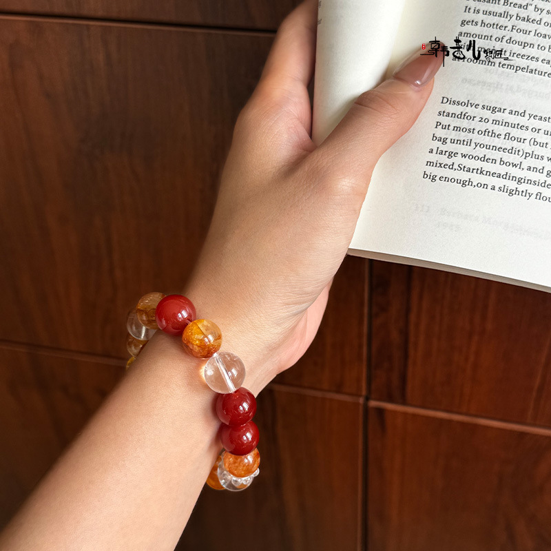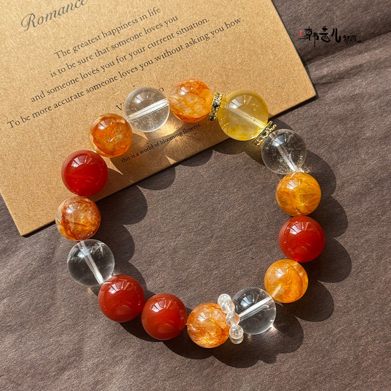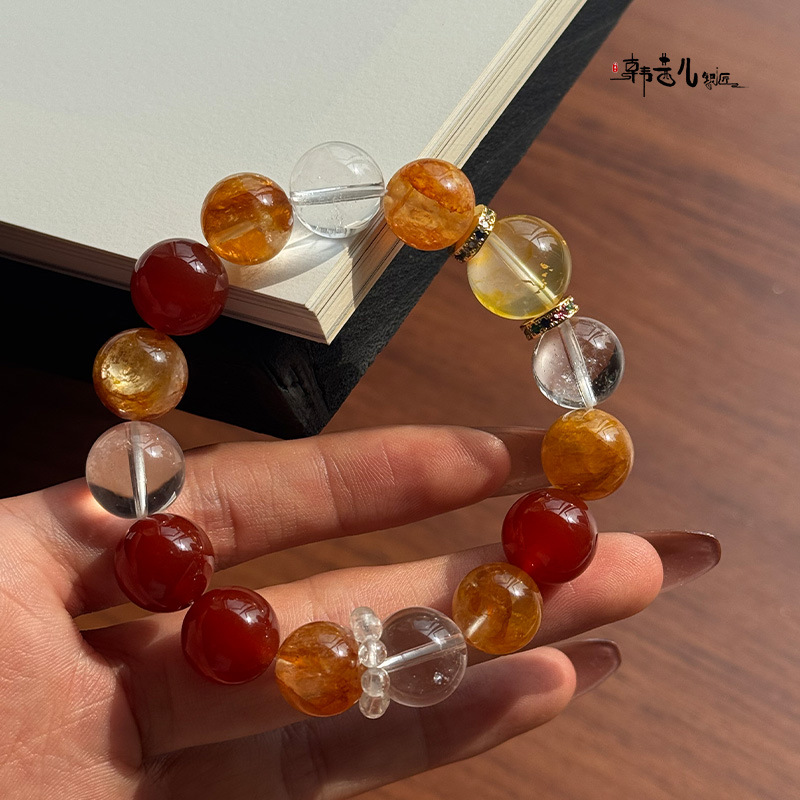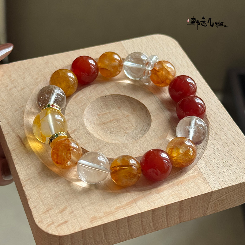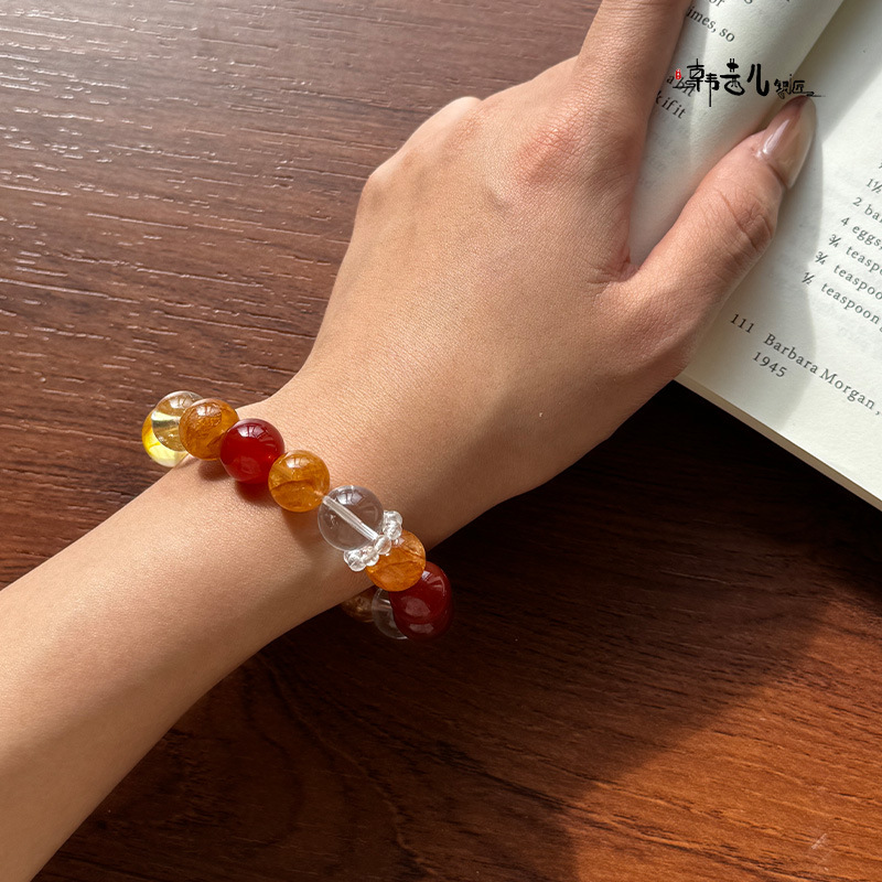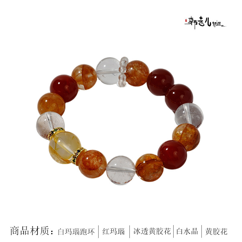 韩茜儿银匠天然白玛瑙黄胶花黄胶花时尚百搭手串手链招财ZB0028