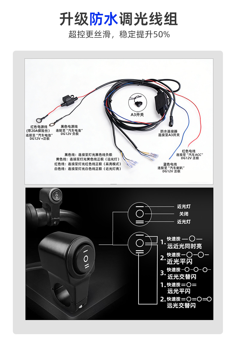 推荐理由:摩托车射灯爆闪 常亮 双模式 电动车安全警示灯 摩托车射灯高亮度 低功耗 长寿命电动车改装灯