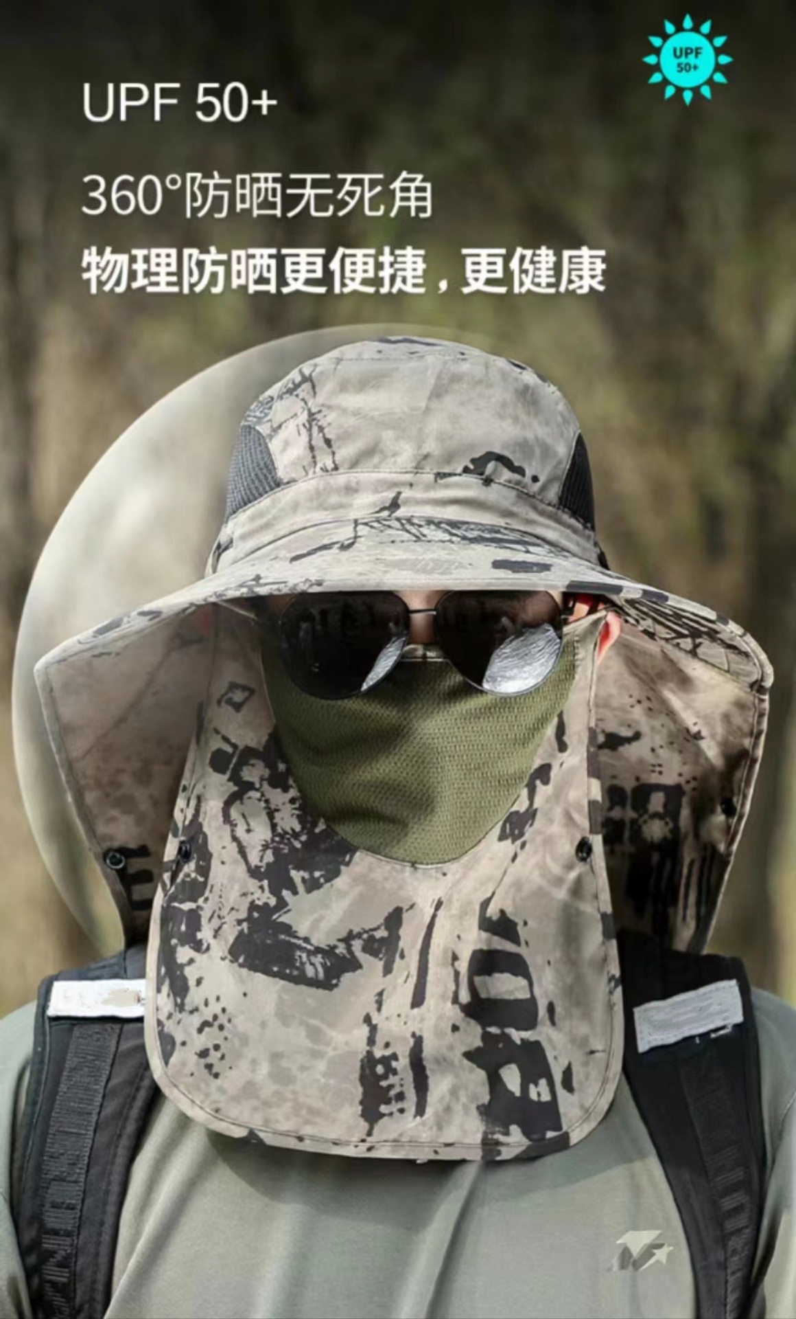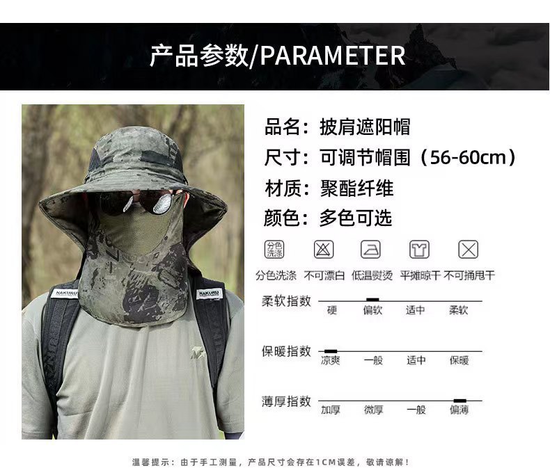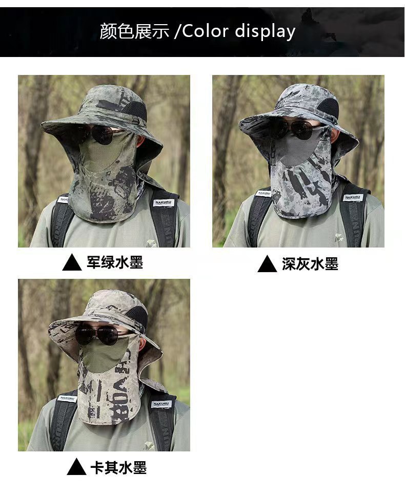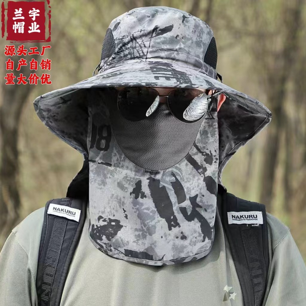 迷彩防晒面罩男士夏天钓鱼帽遮脸渔夫帽防紫外线太阳帽户外遮阳帽
