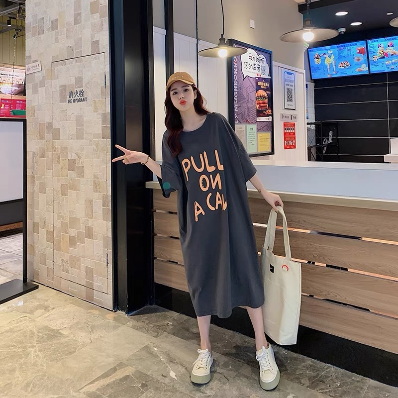 ins网红款韩系开叉个性字母印花T恤长裙中长款过膝连衣裙睡裙孕妇,批发价,价格:19,厂家直销,ins网红款韩系开叉个性字母印花T恤长裙中长款过膝连衣裙睡裙孕妇,免费拿样。
