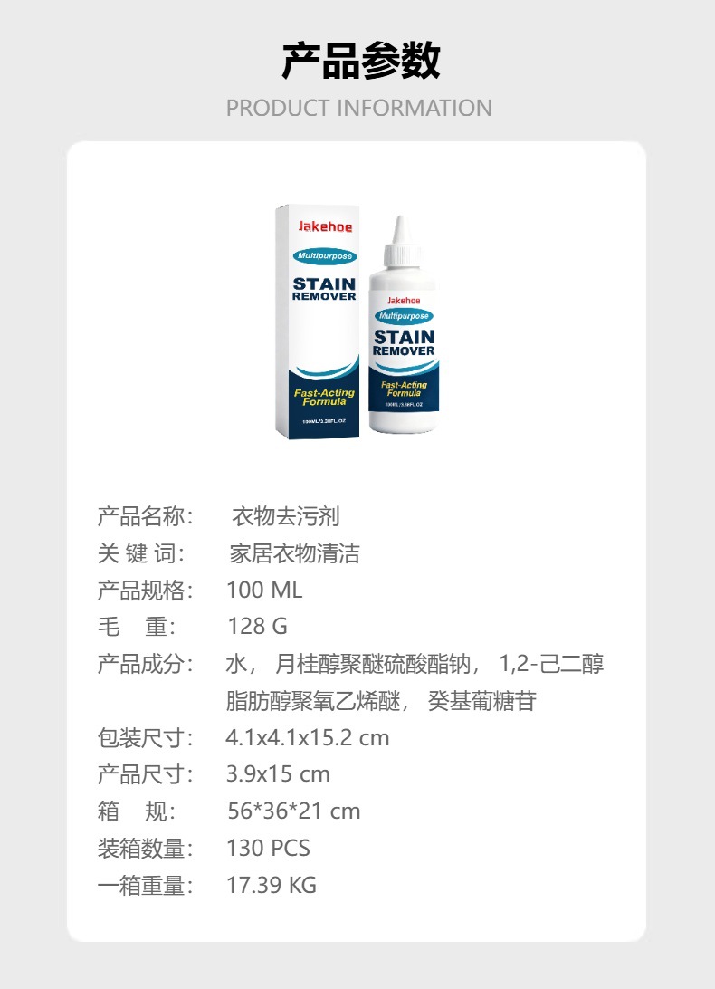 JAKEHOE 衣物去污剂 家居日常多用途清洁护理去渍无异味不伤衣物