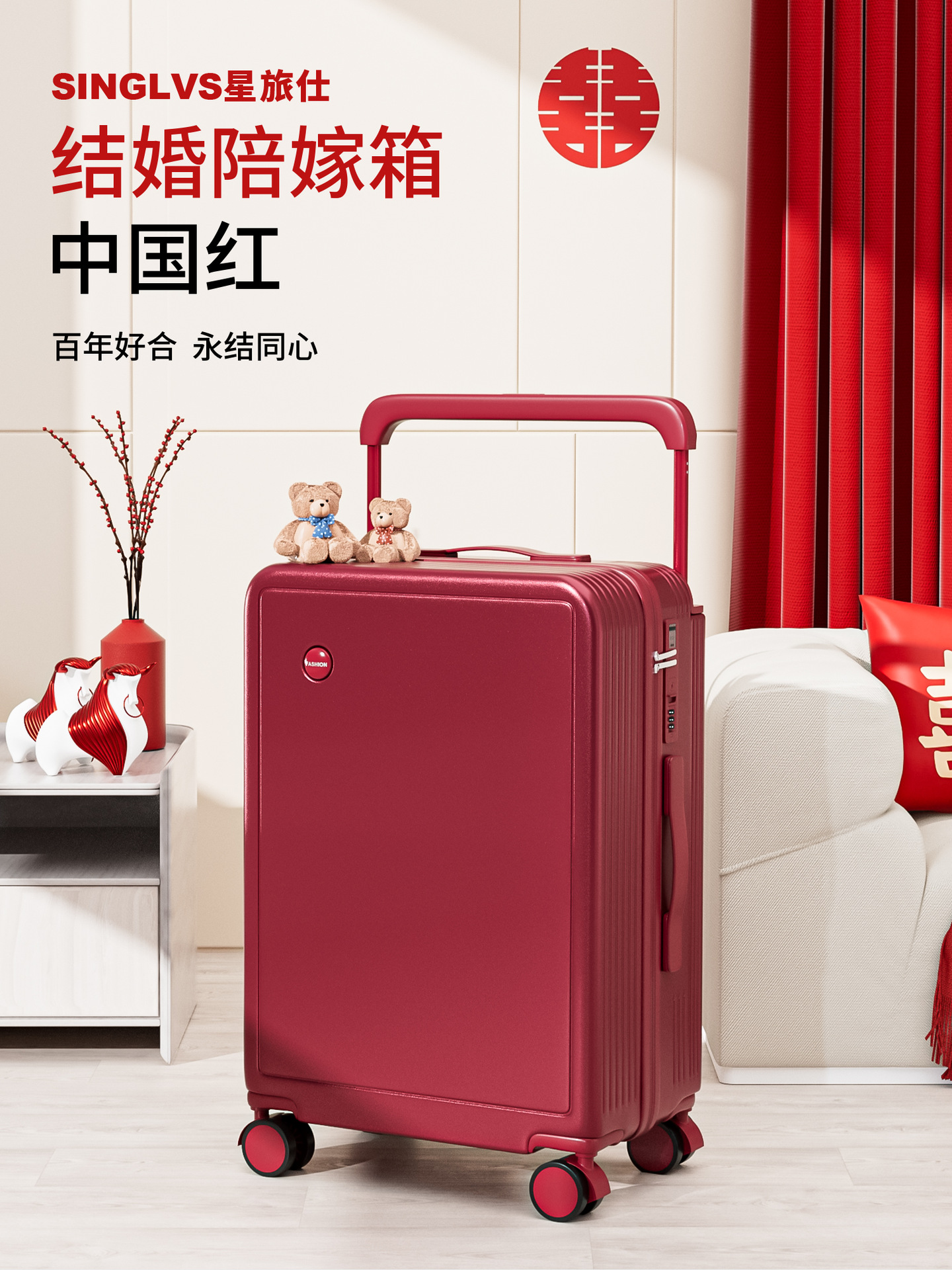 红色结婚行李箱万向轮静音拉杆箱免托运旅行箱大容量陪嫁密码箱,批发价,价格:198,厂家直销,红色结婚行李箱万向轮静音拉杆箱免托运旅行箱大容量陪嫁密码箱,免费拿样。