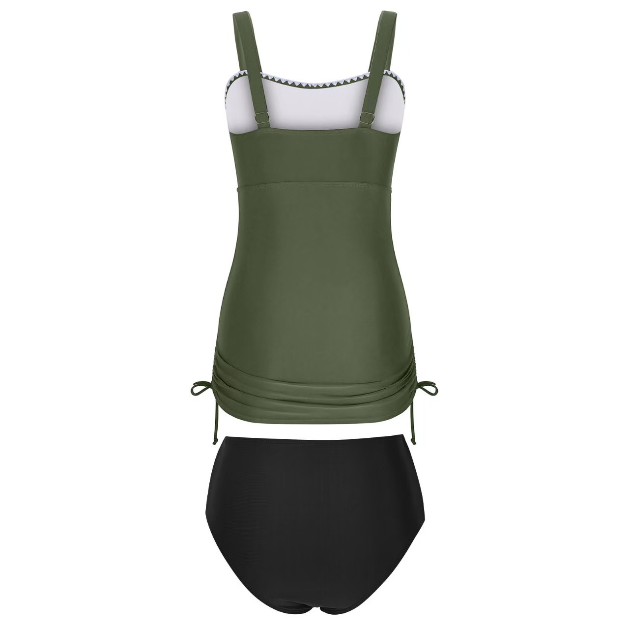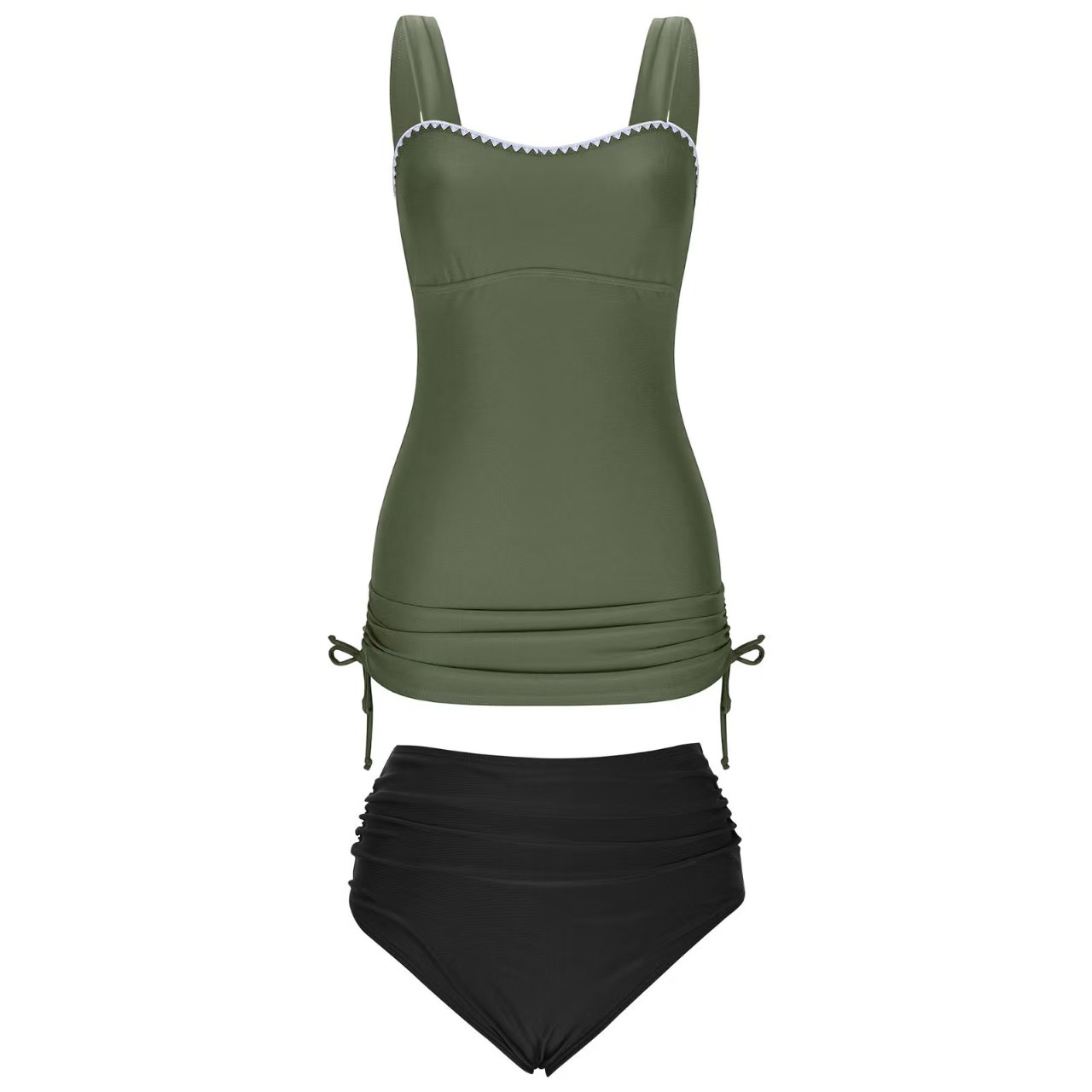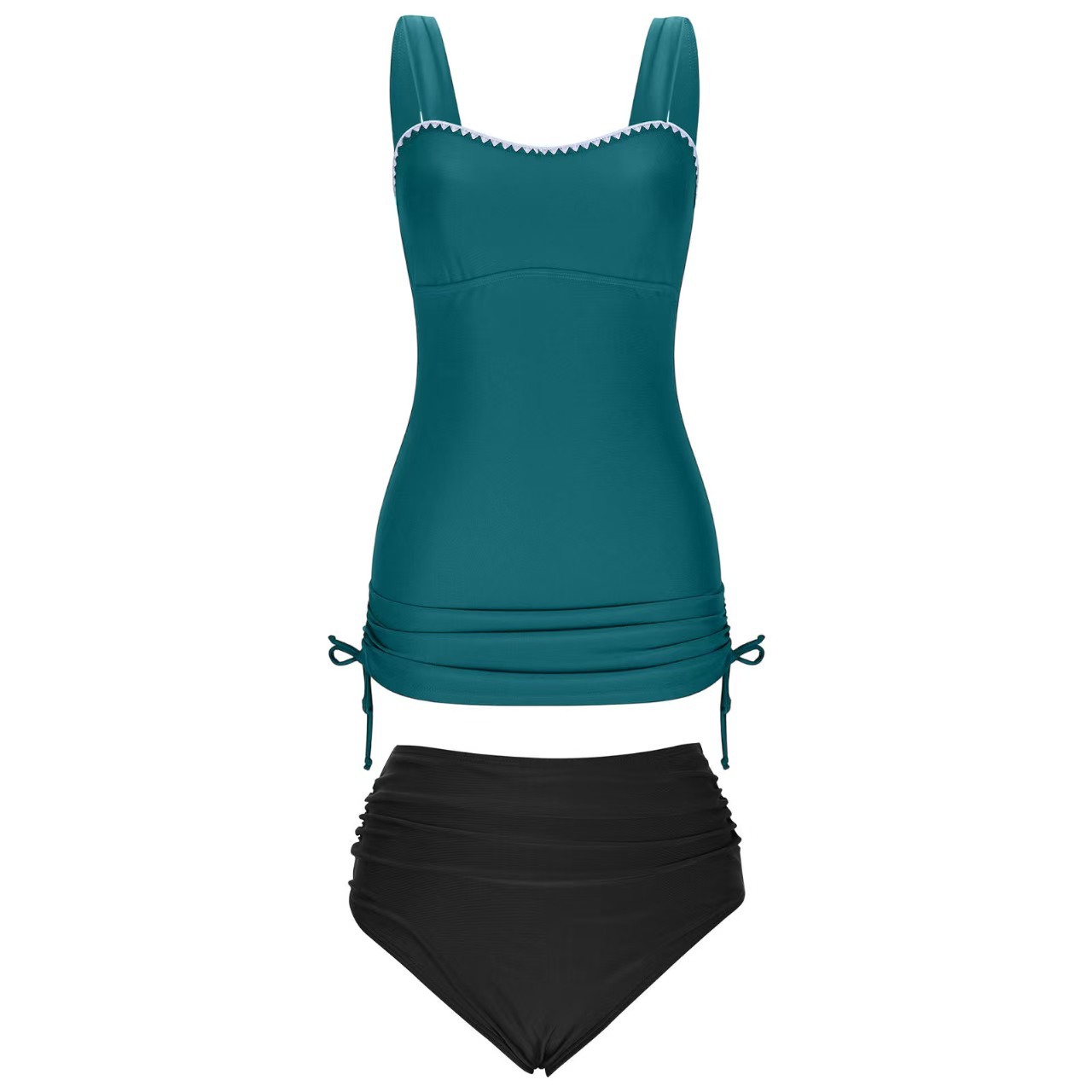 欧美外贸分体泳衣女士修身显瘦紧身三角裤保守遮肚性感泳装现货