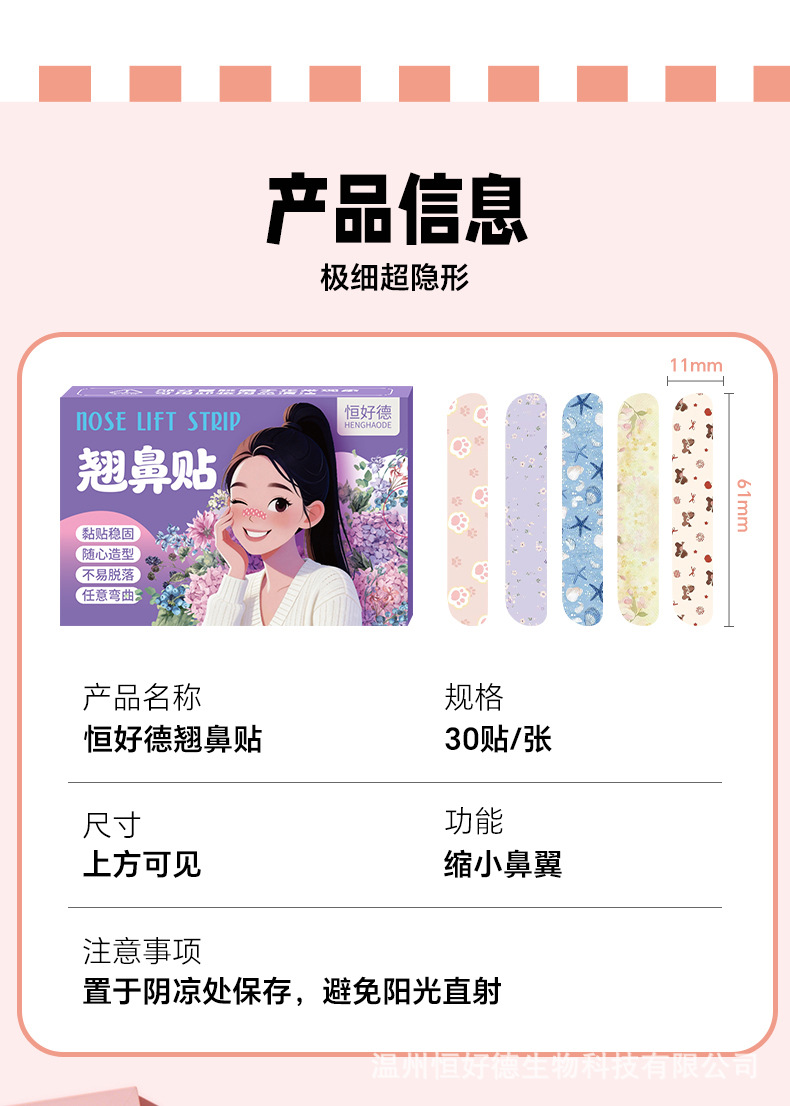 恒好德通气翘鼻贴可调节裁剪鼻翼宽大鼻翼缩小贴矫正塑形卡通鼻贴,批发价,价格:2.8,厂家直销,恒好德通气翘鼻贴可调节裁剪鼻翼宽大鼻翼缩小贴矫正塑形卡通鼻贴,免费拿样。