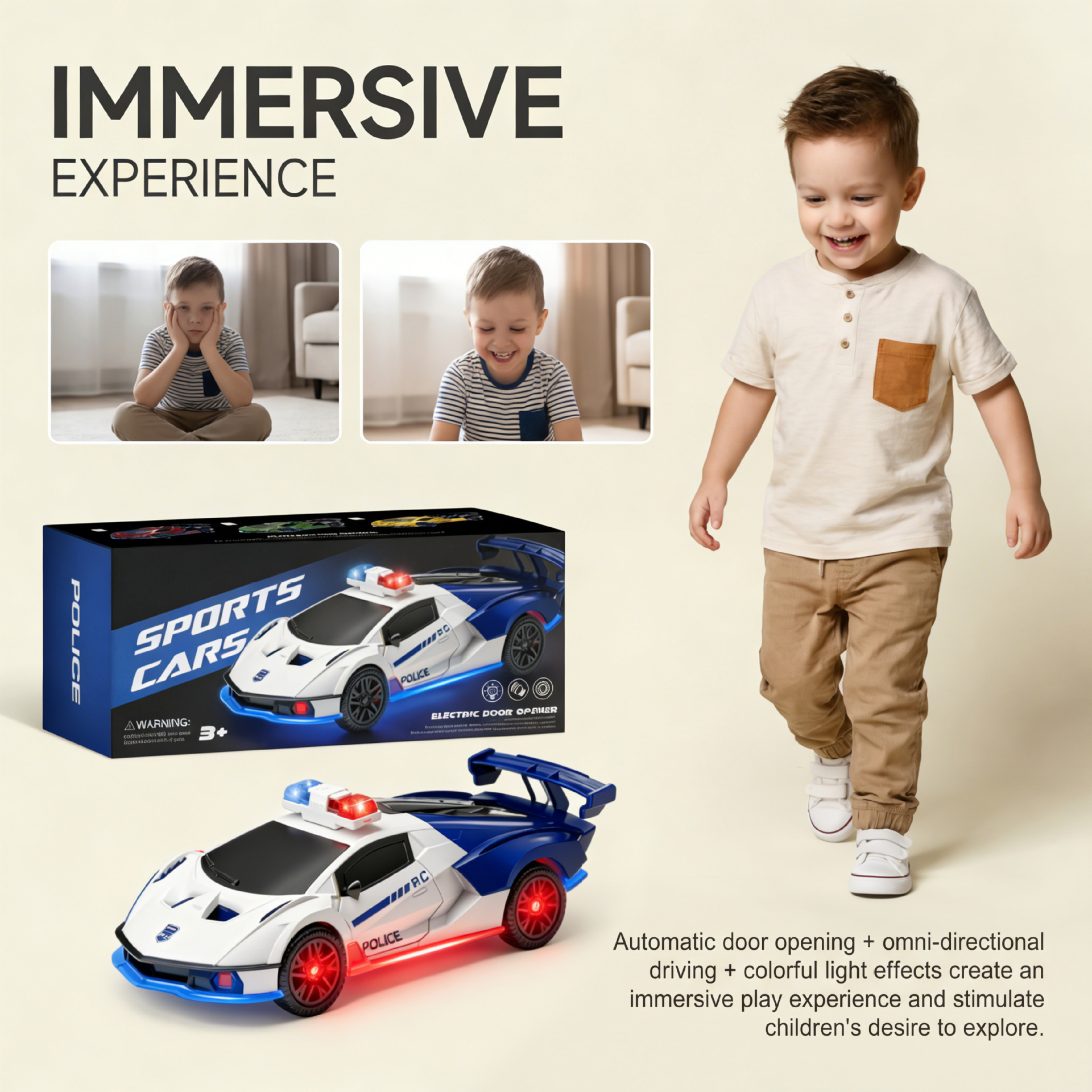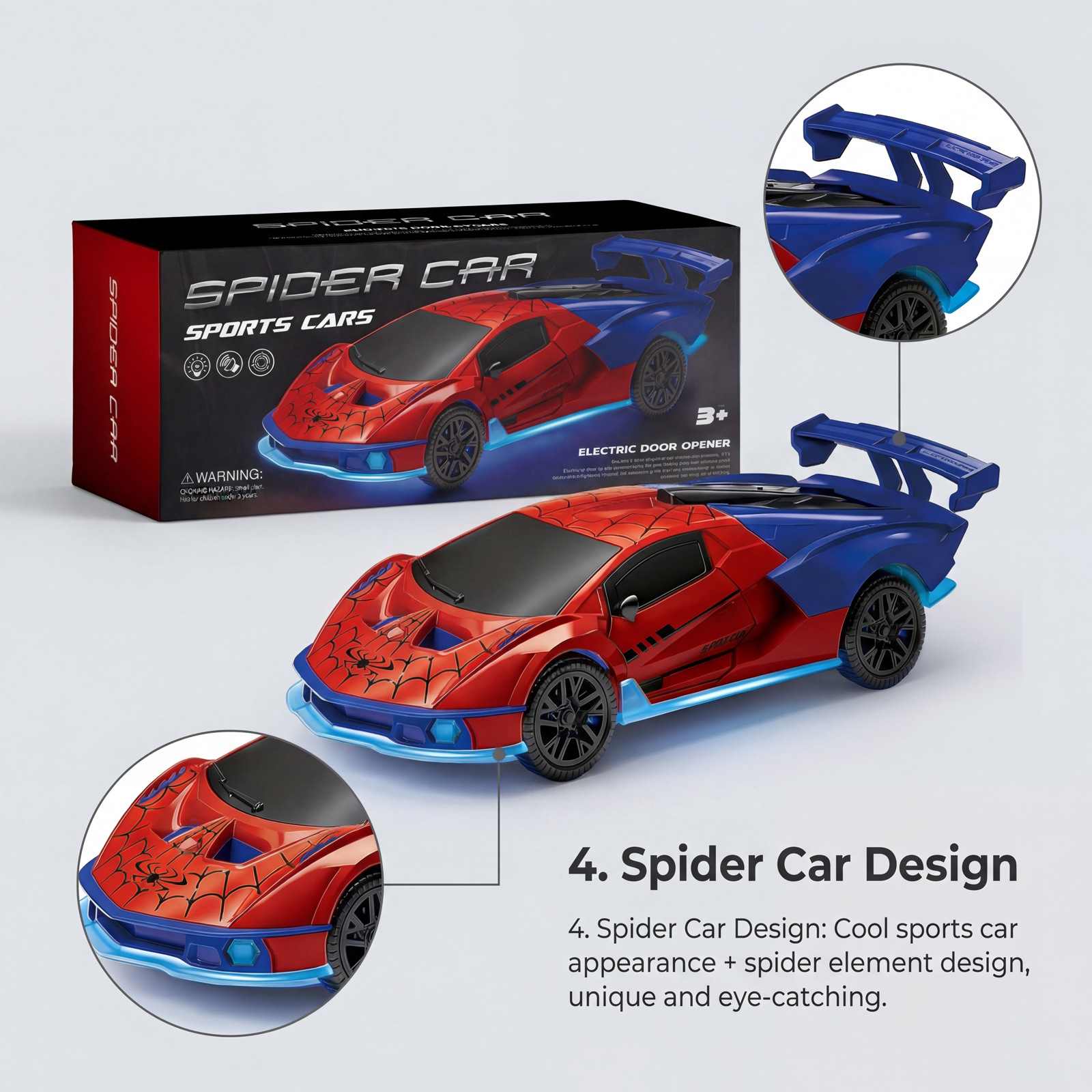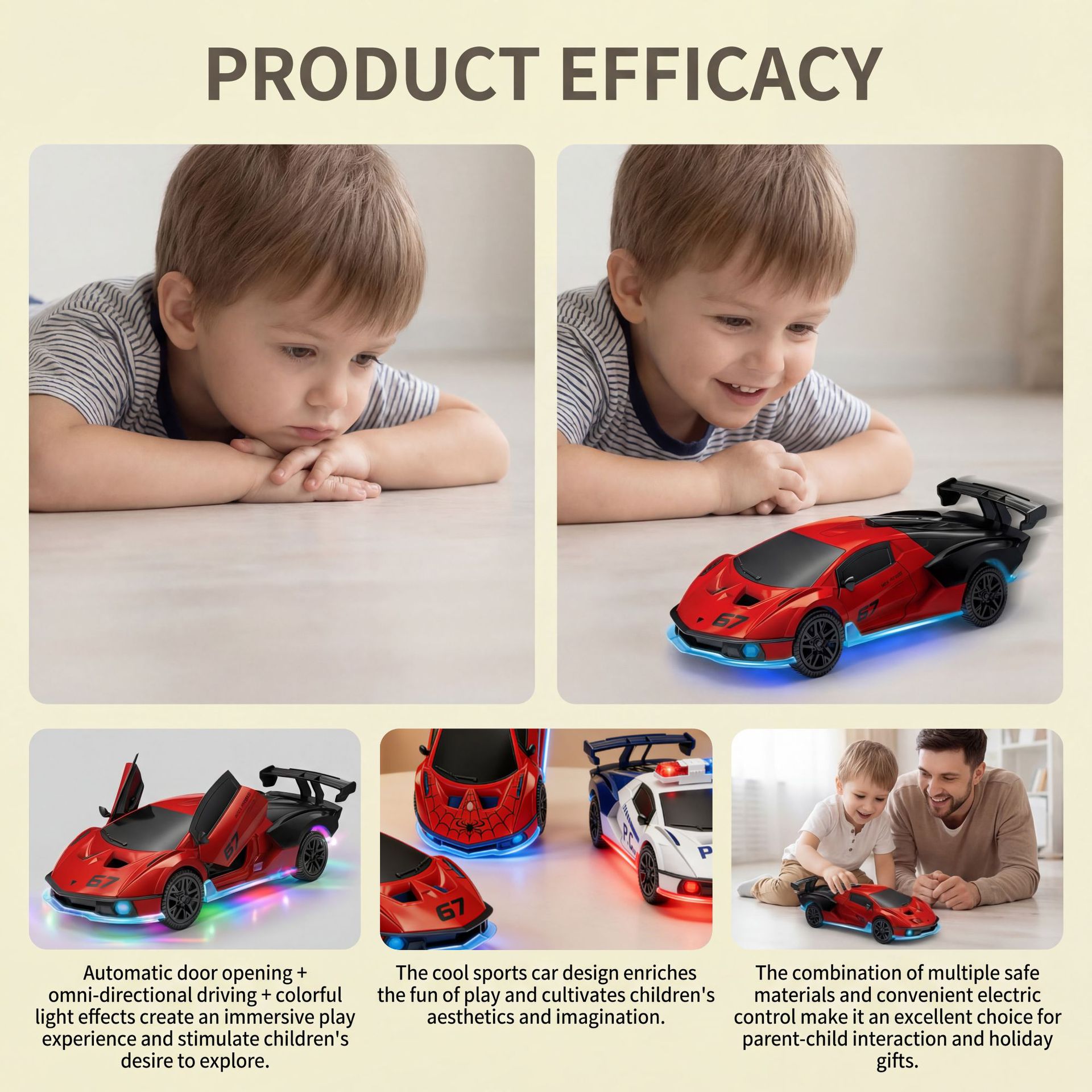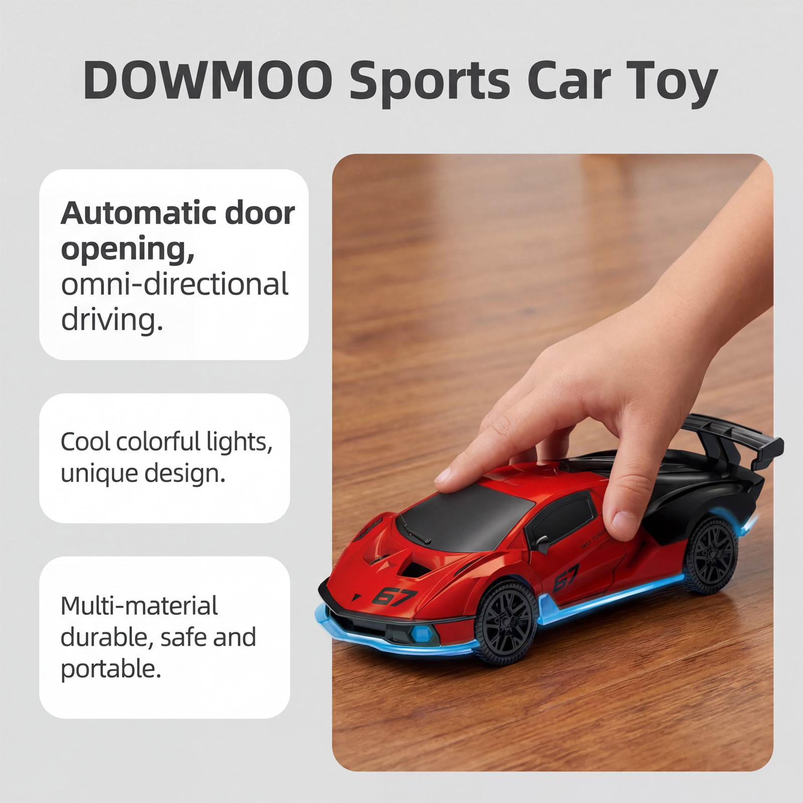 DOWMOO万向开门汽车玩具 酷炫模型设计自动开门彩色灯光安全材质