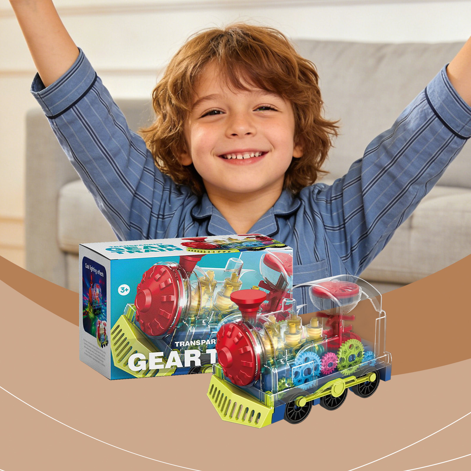 DOWMOO 电动齿轮火车玩具 齿轮火车万向行走益智模型儿童电动玩具