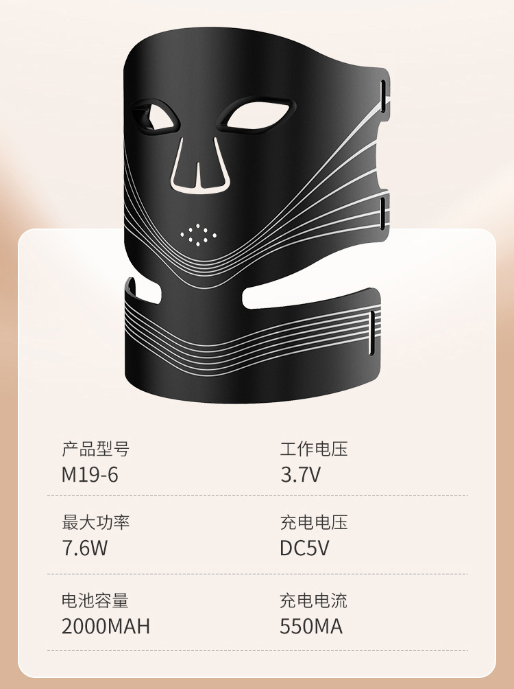 无线磁吸彩光硅胶面罩美容仪Type-C充电可调节时长脸部光谱面膜仪