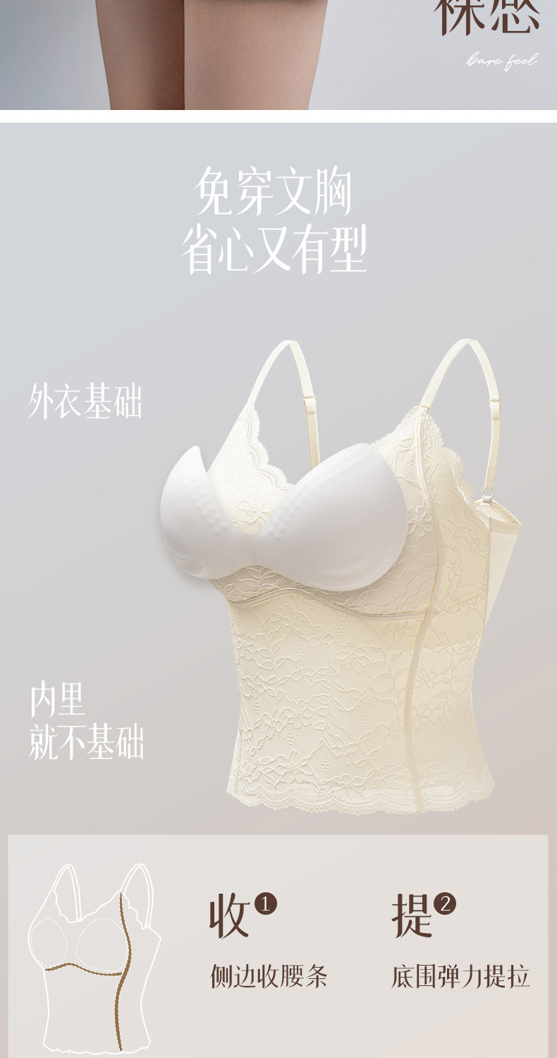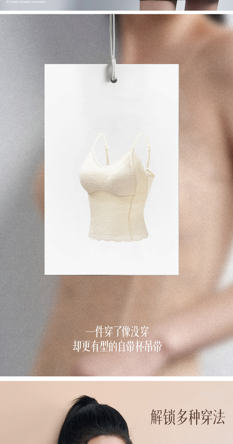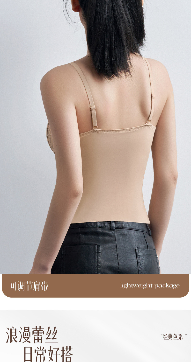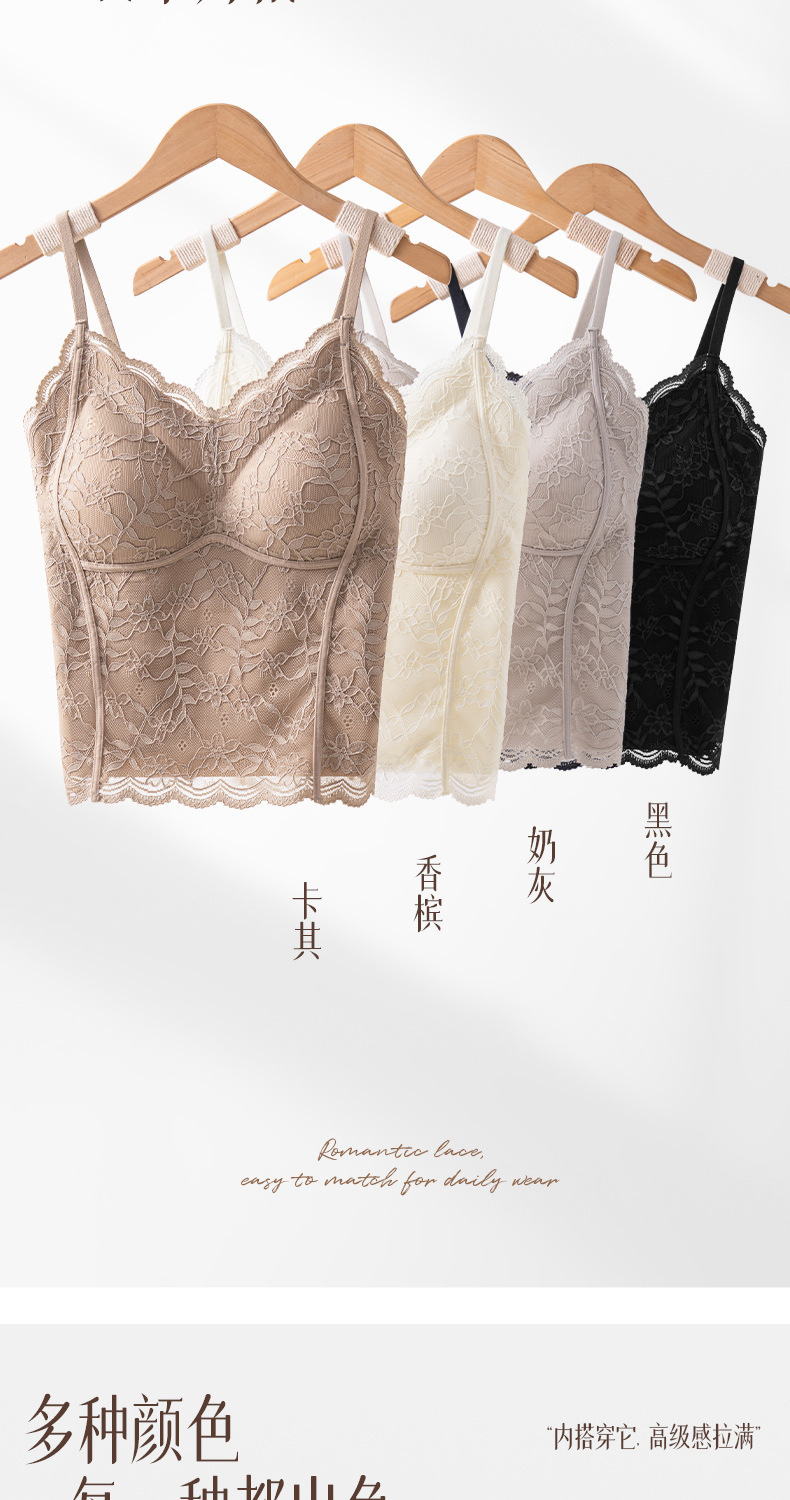 性感蕾丝小吊带背心女内搭一体带胸垫打底带胸垫轻塑修身美背文胸