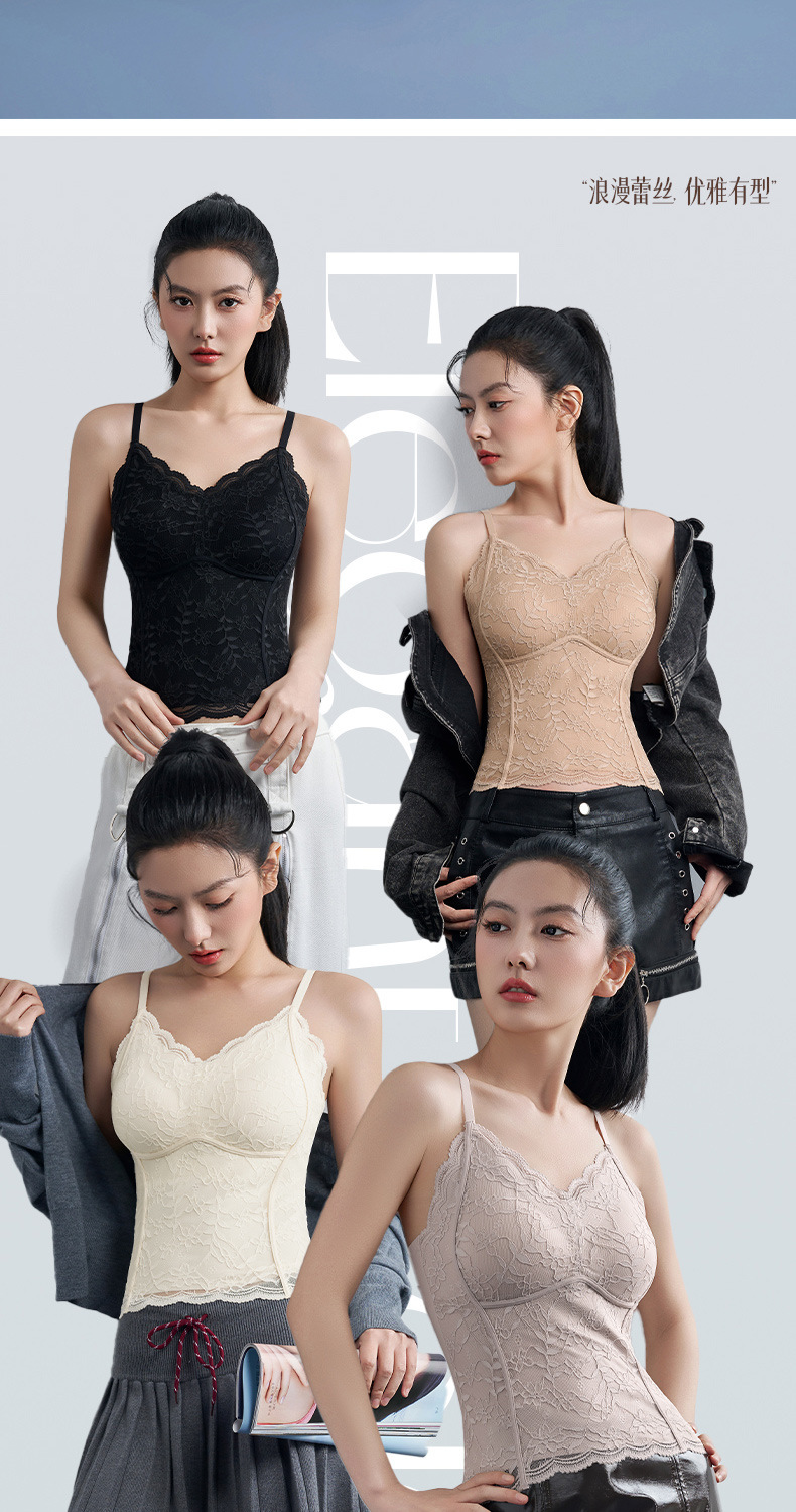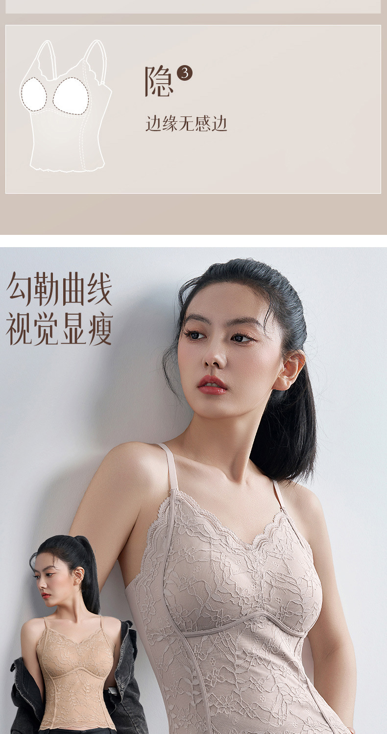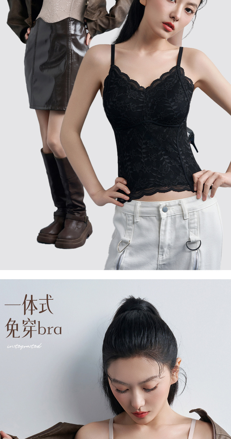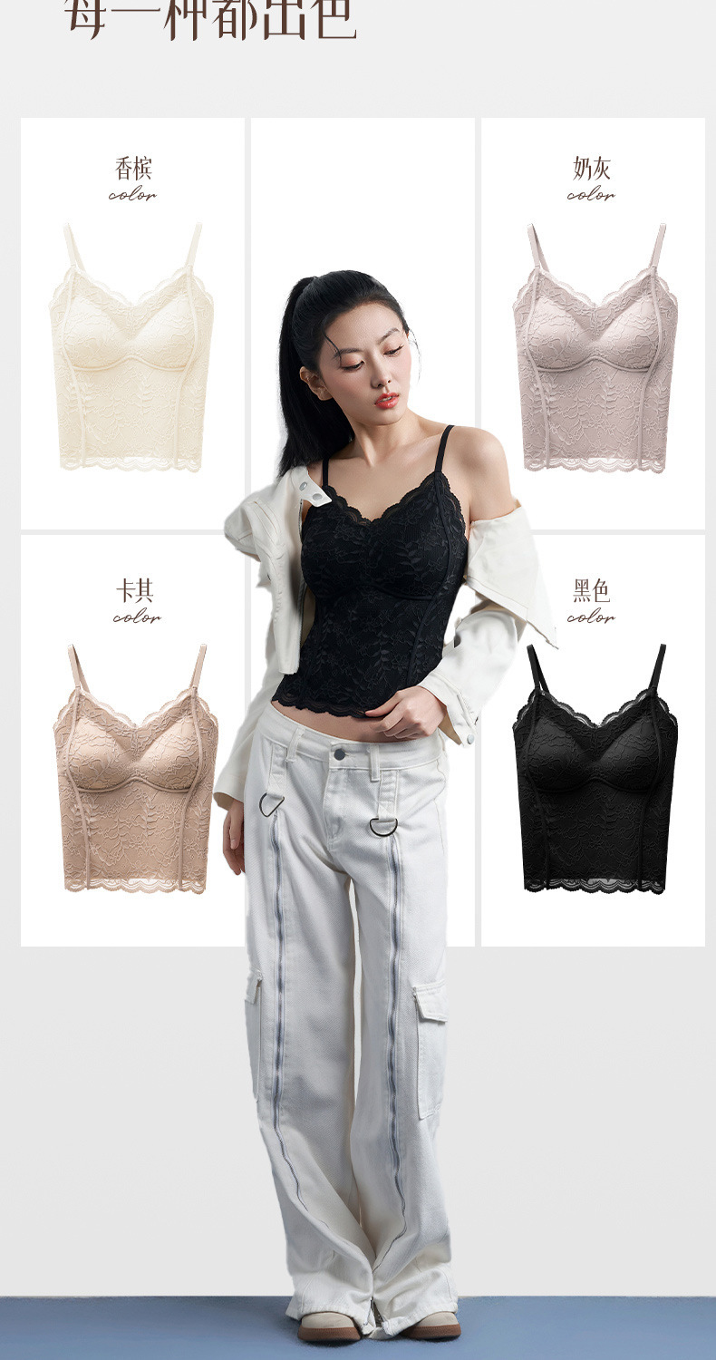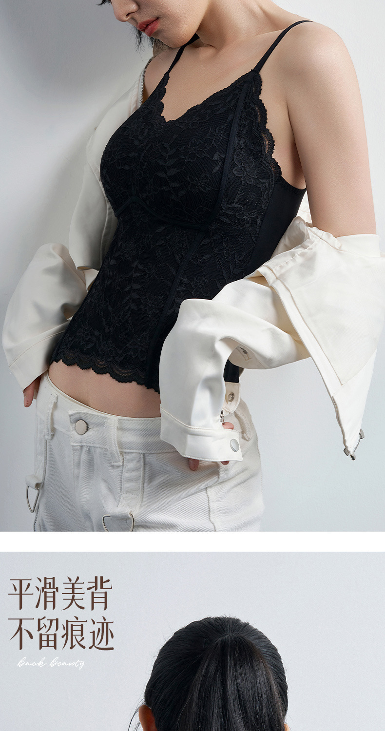 性感蕾丝小吊带背心女内搭一体带胸垫打底带胸垫轻塑修身美背文胸