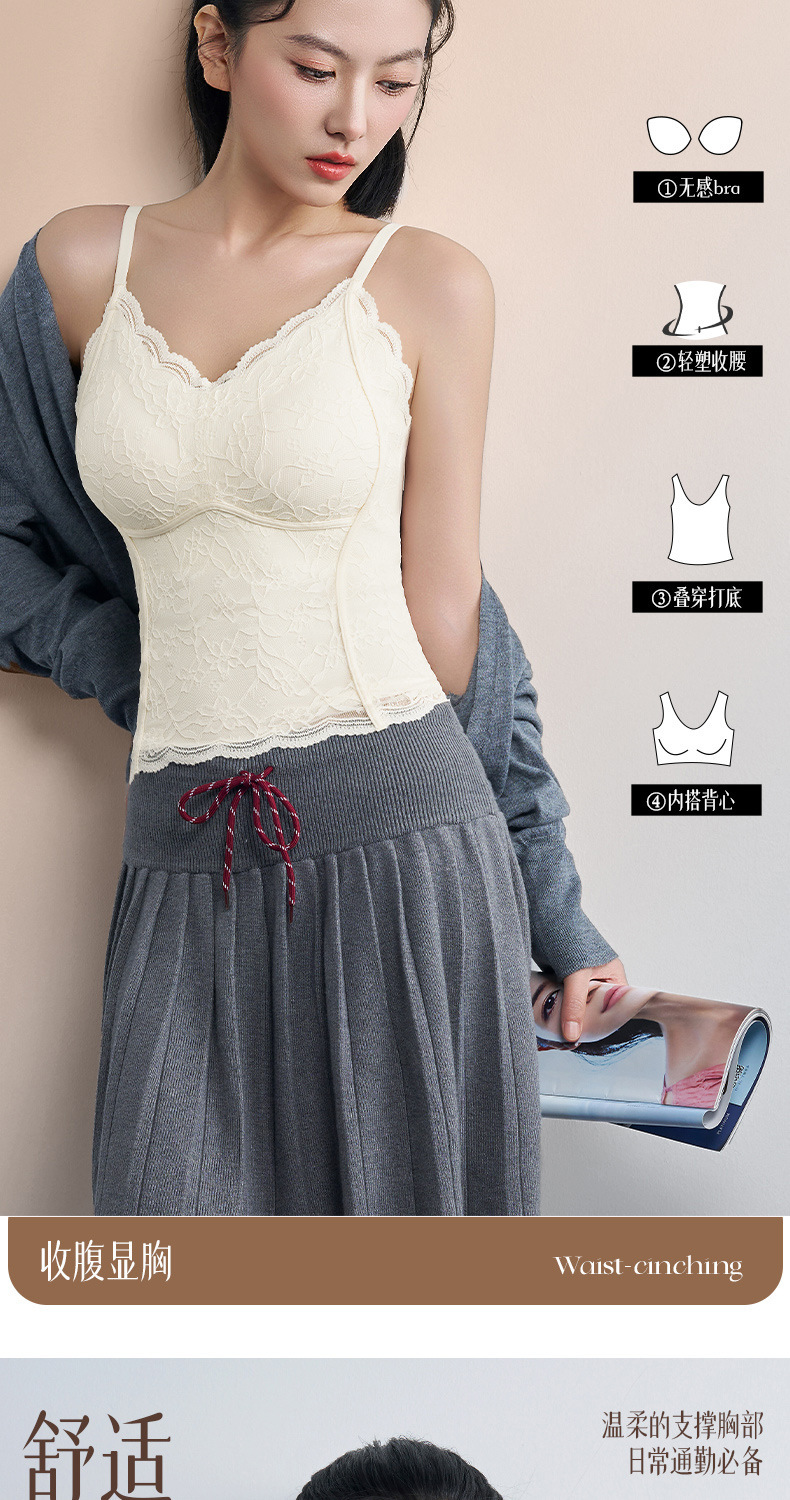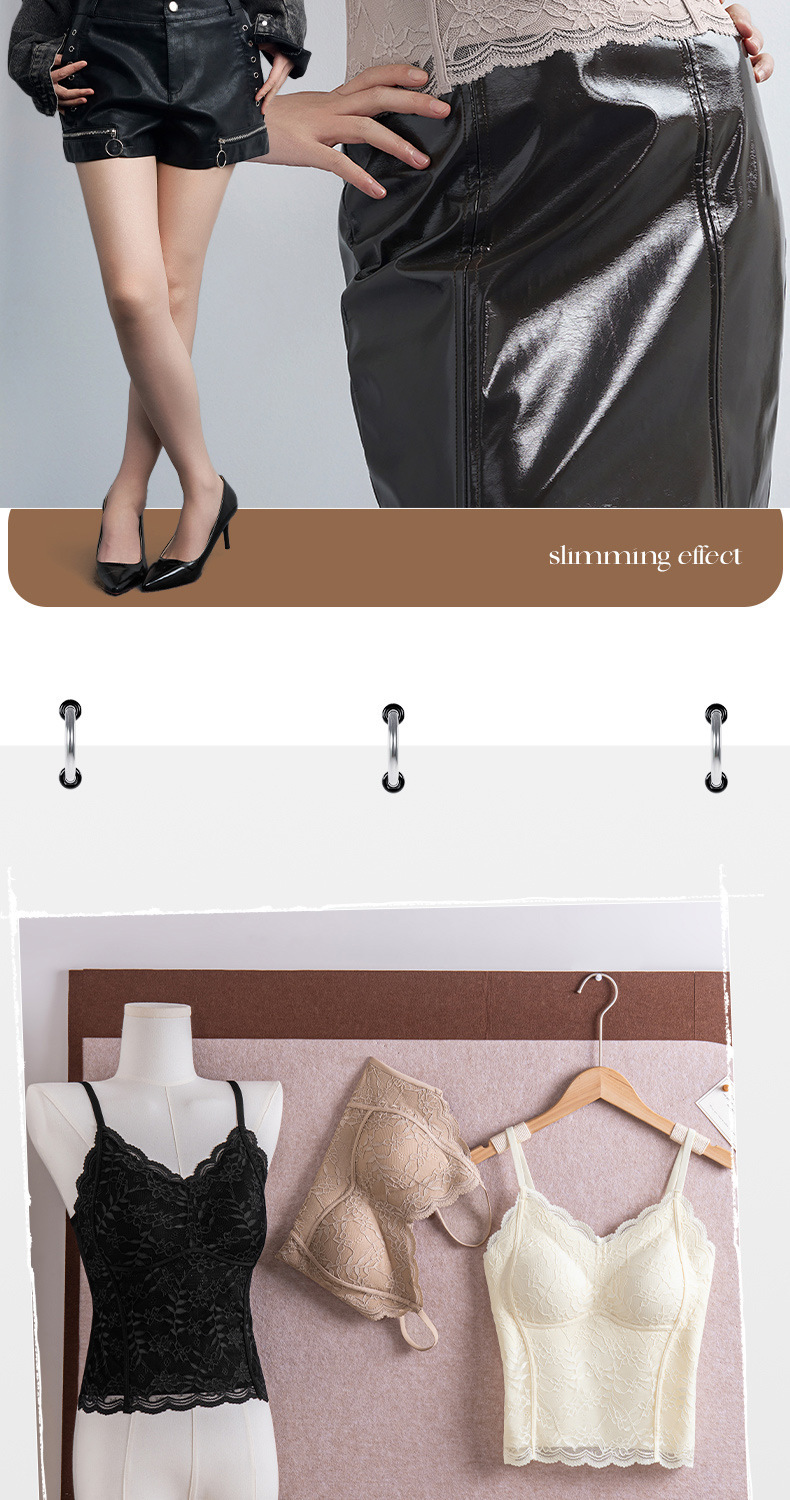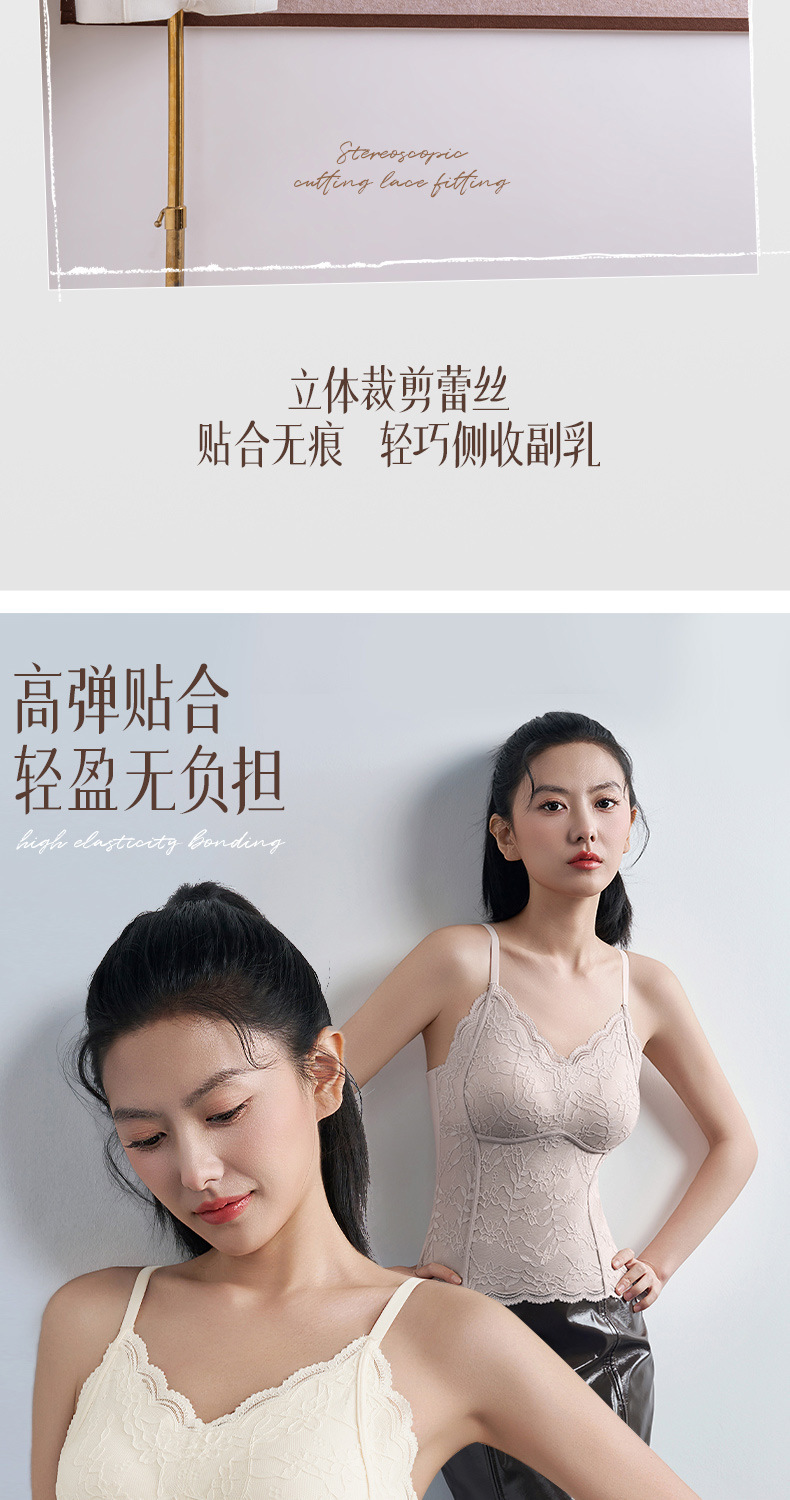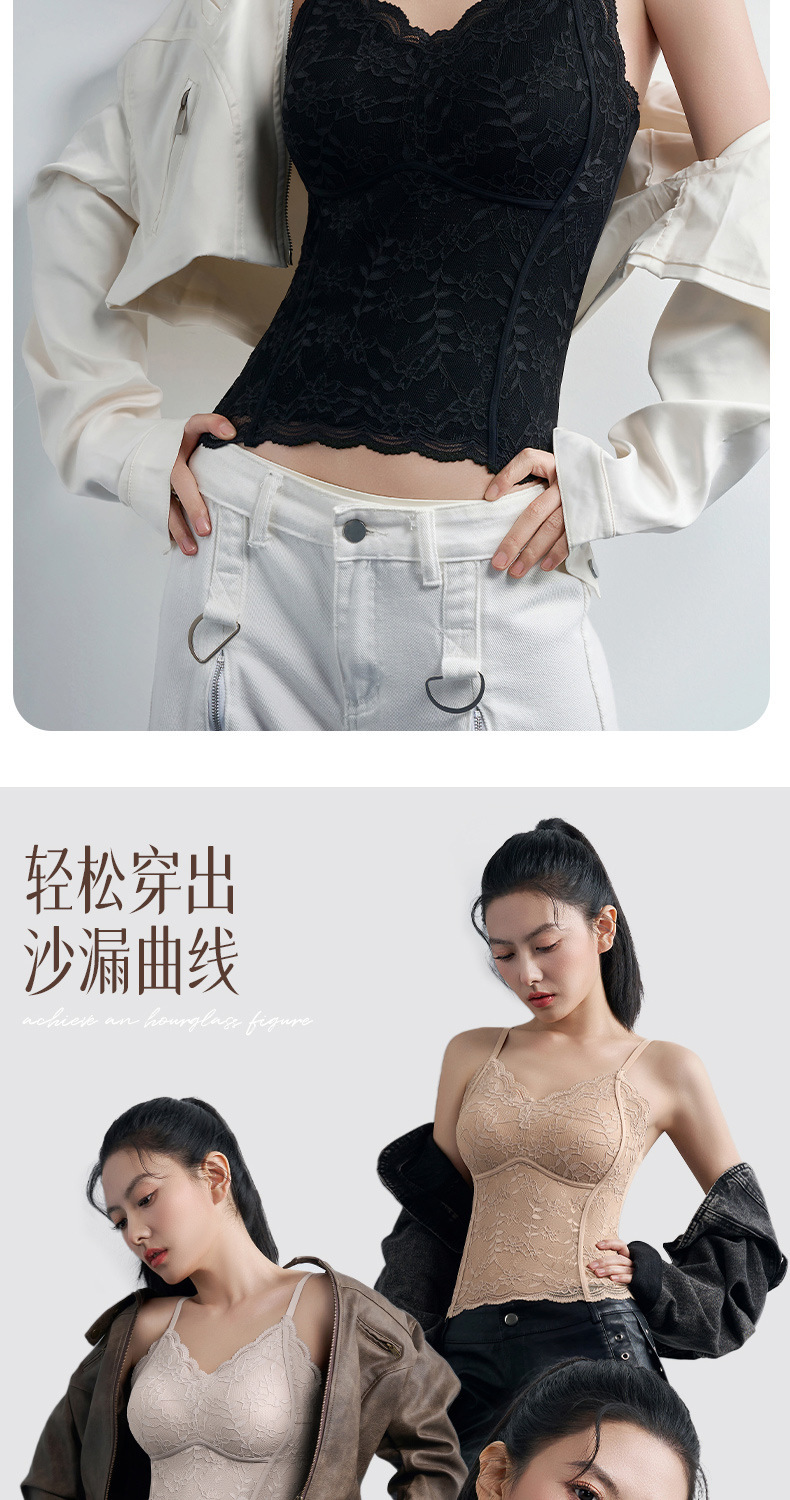 性感蕾丝小吊带背心女内搭一体带胸垫打底带胸垫轻塑修身美背文胸