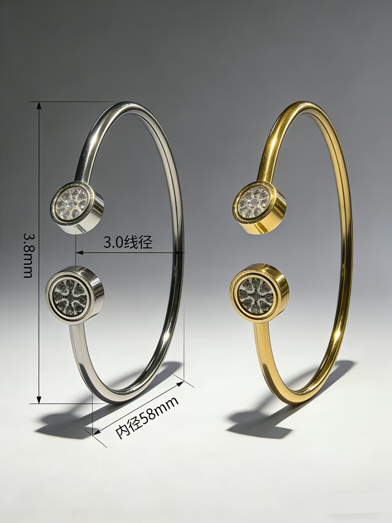跨境镶钻开口手镯不锈钢三色金不掉色欧美风小众设计货源批发手饰,批发价,价格:8.89,厂家直销,跨境镶钻开口手镯不锈钢三色金不掉色欧美风小众设计货源批发手饰,免费拿样。