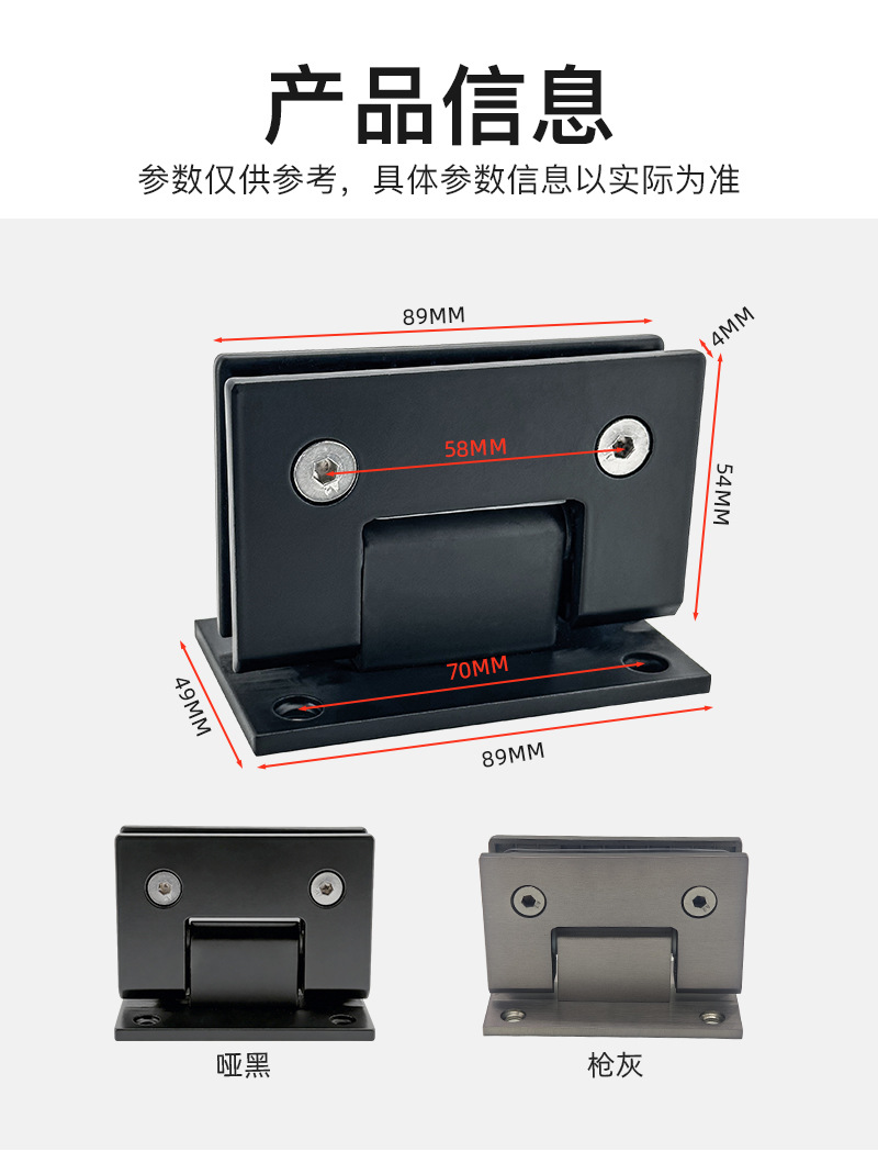 201不锈钢浴室夹4厘半铸90度浴室玻璃夹淋浴房玻璃门夹合页铰链