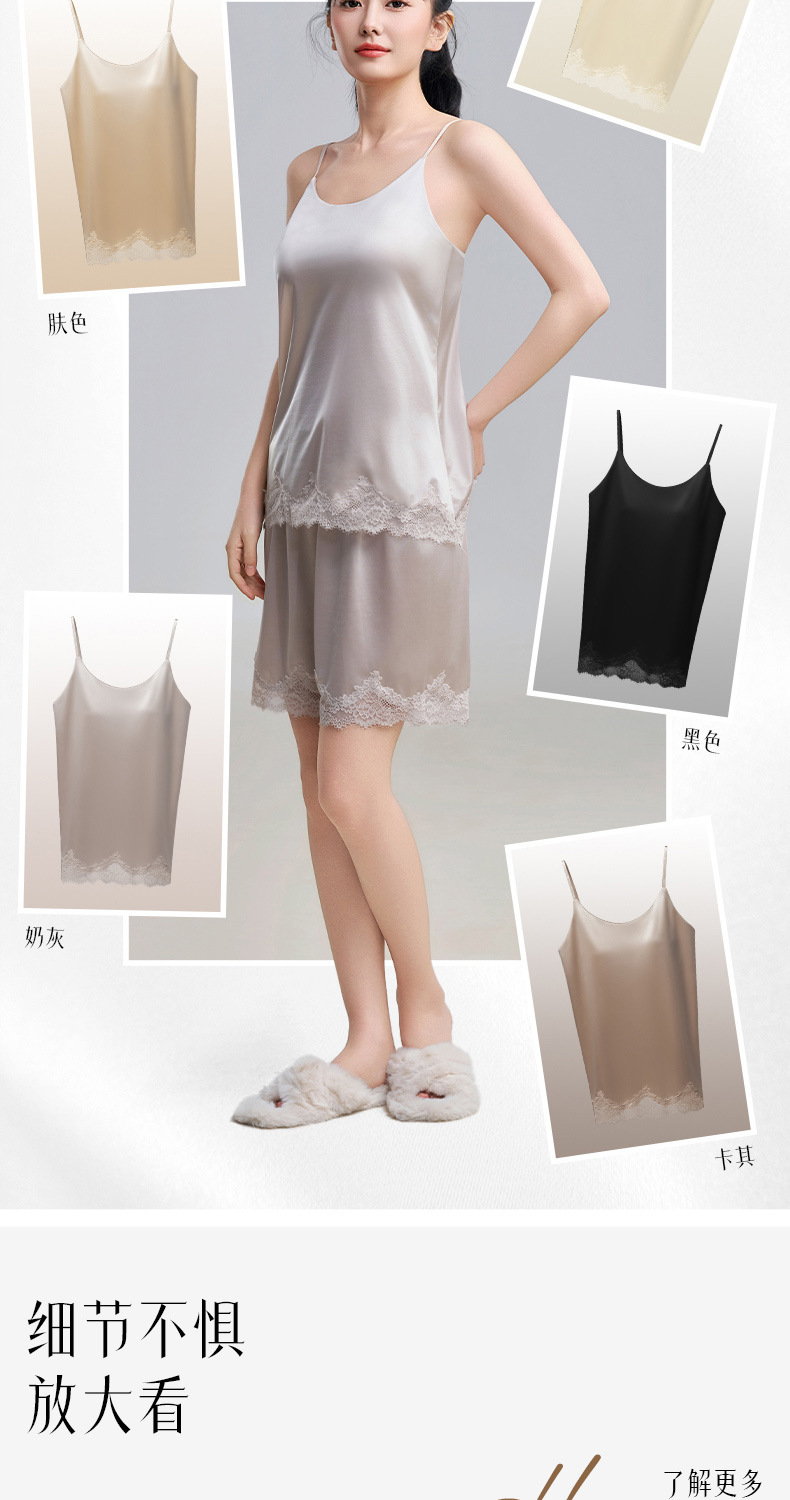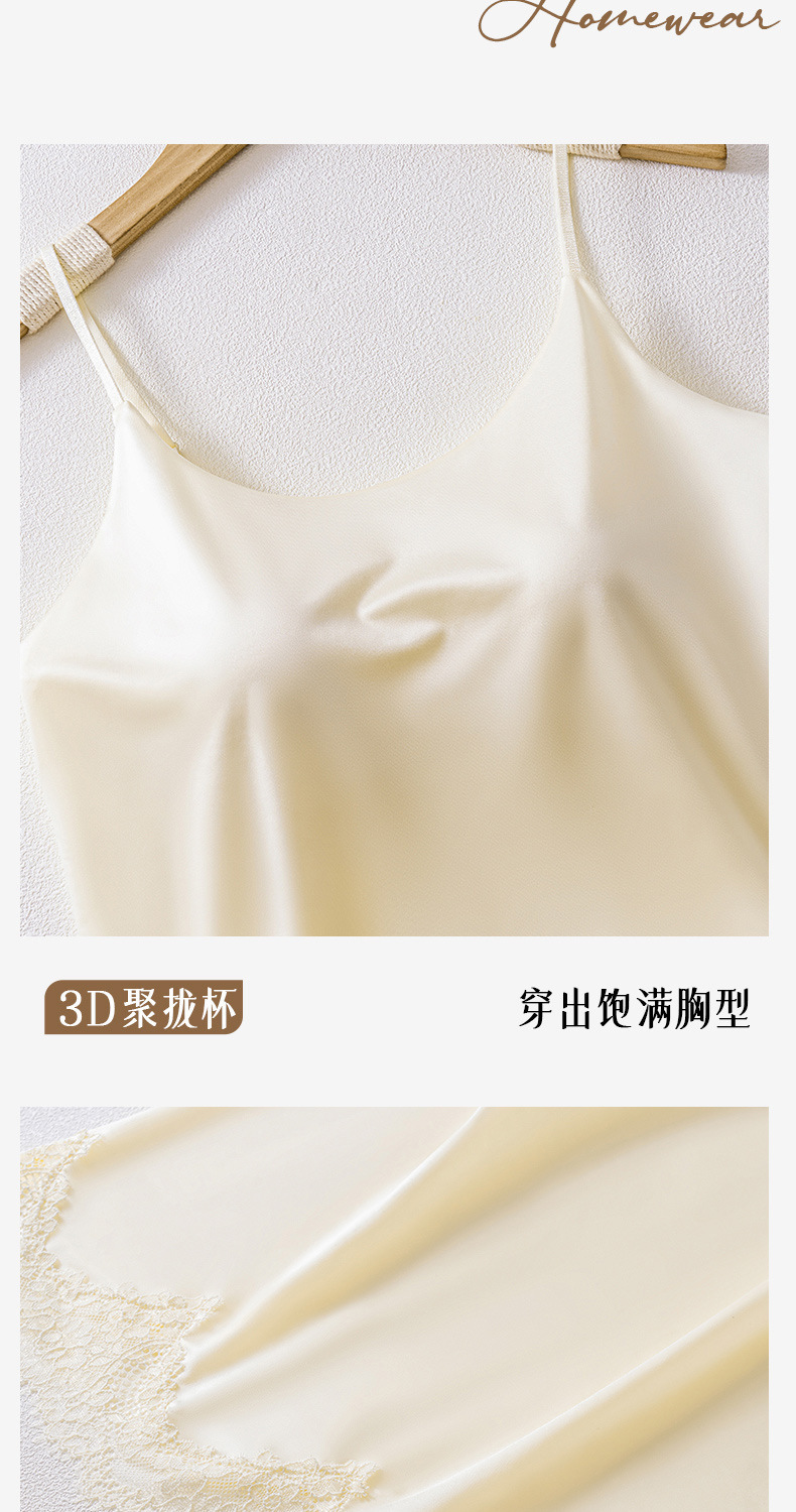 轻奢缎面吊带背心女士套装极简带胸垫居家睡衣可外穿无痕聚拢内衣